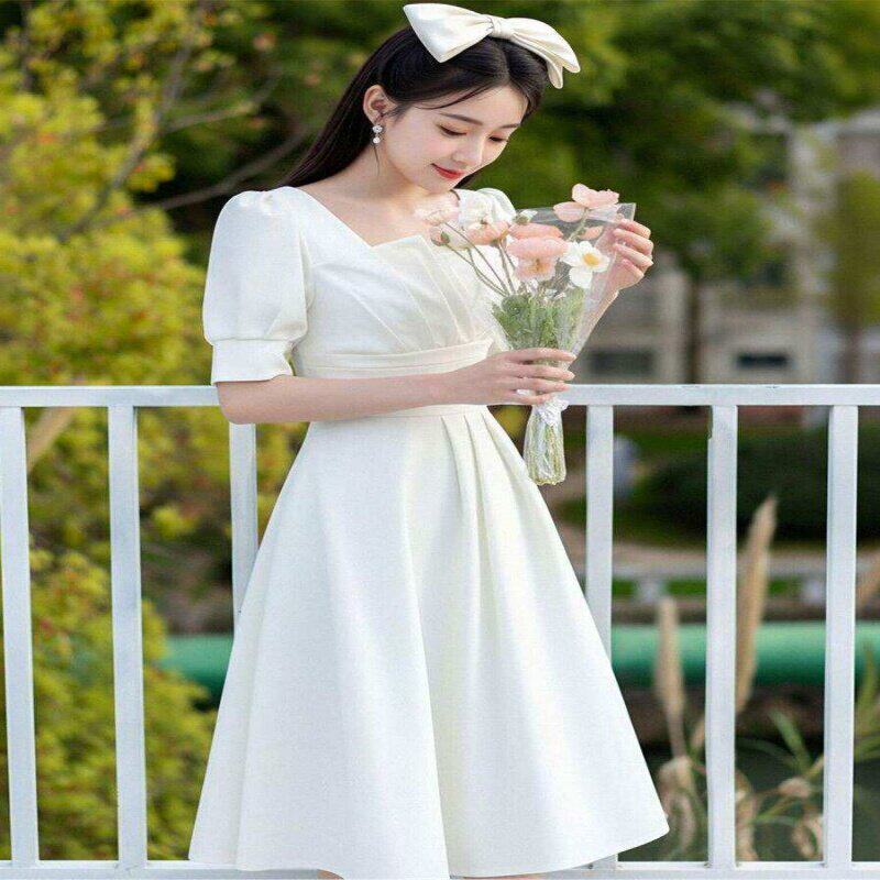 白色订婚礼服平时可穿小个子领证登记小白裙生日成人礼女孩连衣裙