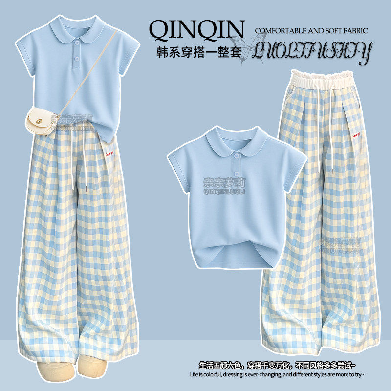 超火的女童纯棉t恤短袖2026新款巨好看夏装套装中大童装polo上衣