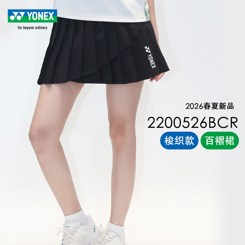 YONEX尤尼克斯羽毛球下装2026春夏新品女百褶短裙yy运动速干A字裙