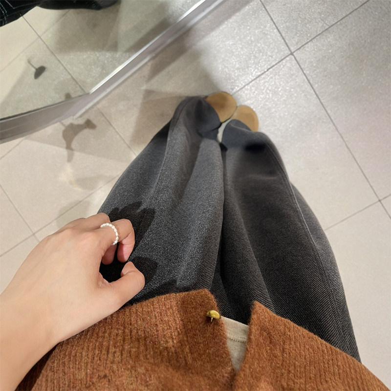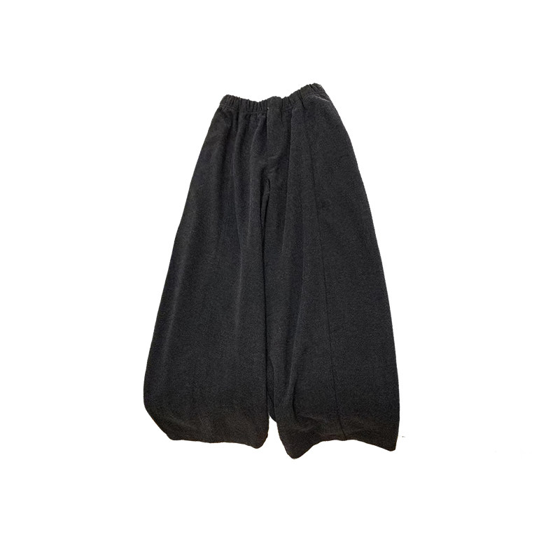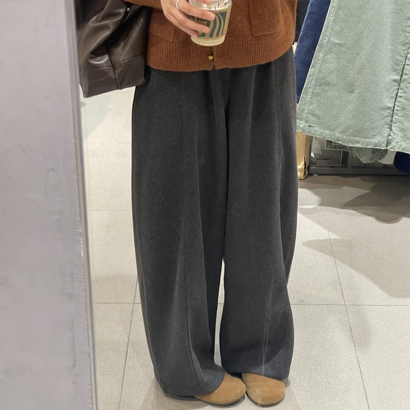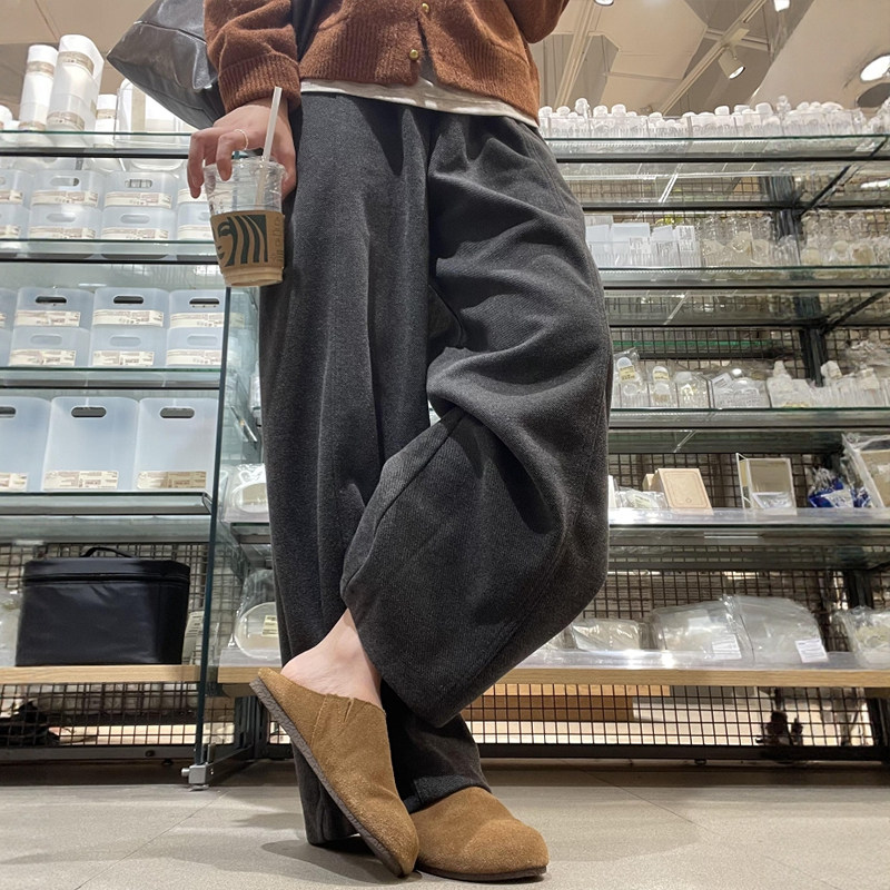 松弛慵懒风黑灰色磨毛阔腿裤子女款春季大码胖mm显瘦遮肉休闲长裤