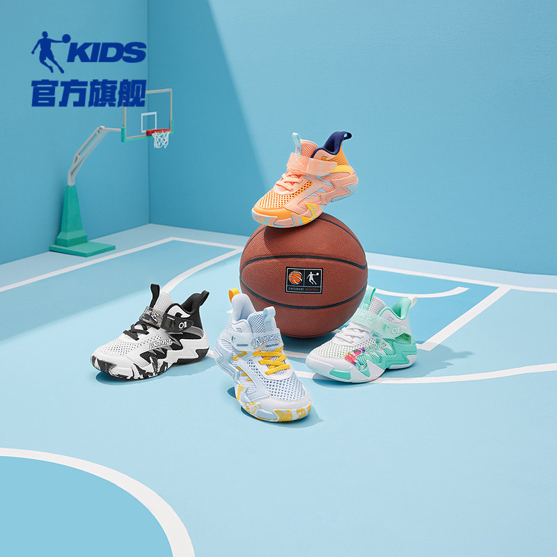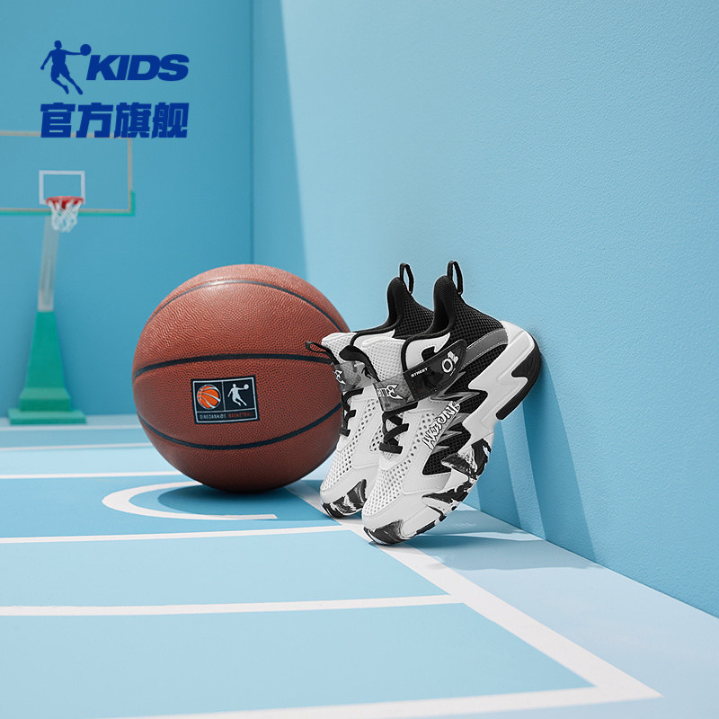 乔丹儿童篮球鞋网面透气鞋子2026夏季新款魔术贴防滑男小童运动鞋