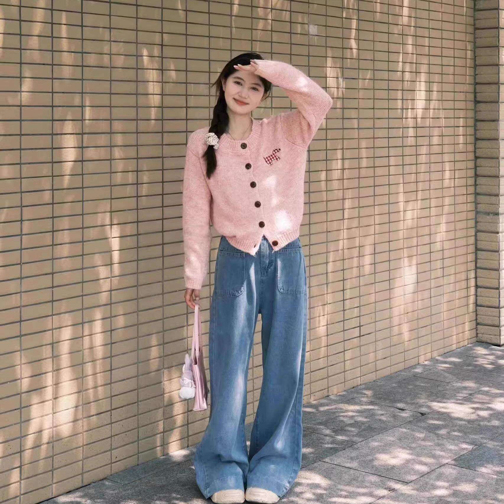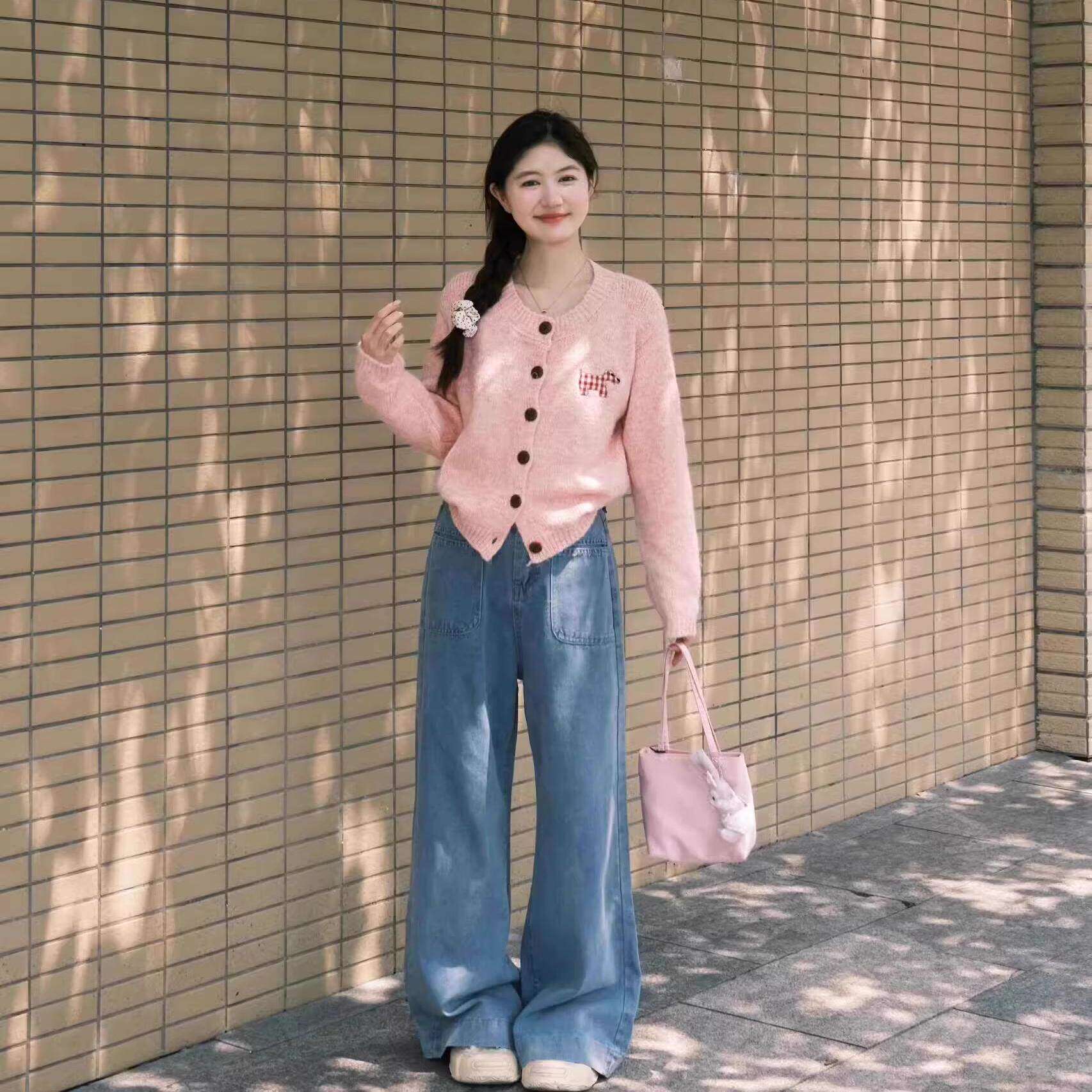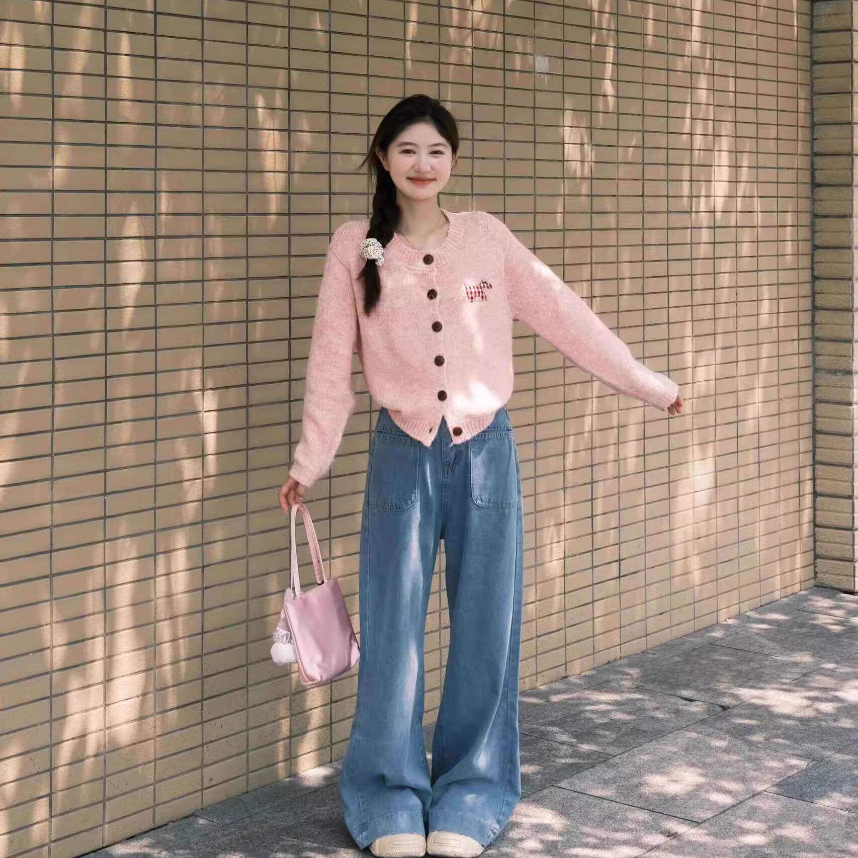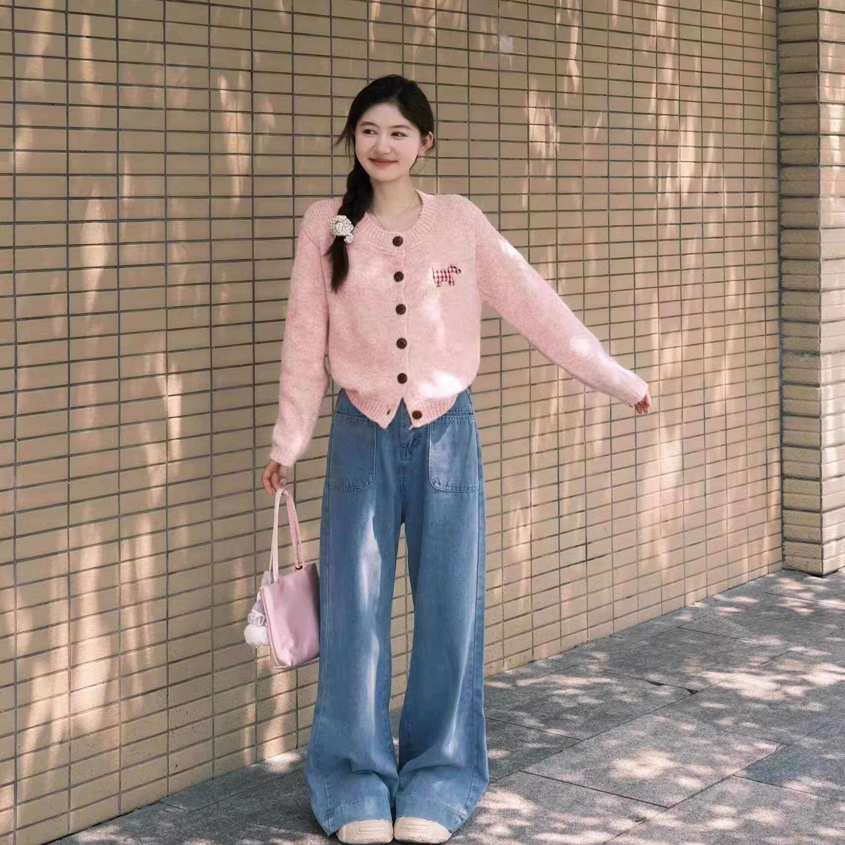 开 春韩系穿搭粉色针织衫女2026新款春款外搭薄开 衫独特绝美小上
