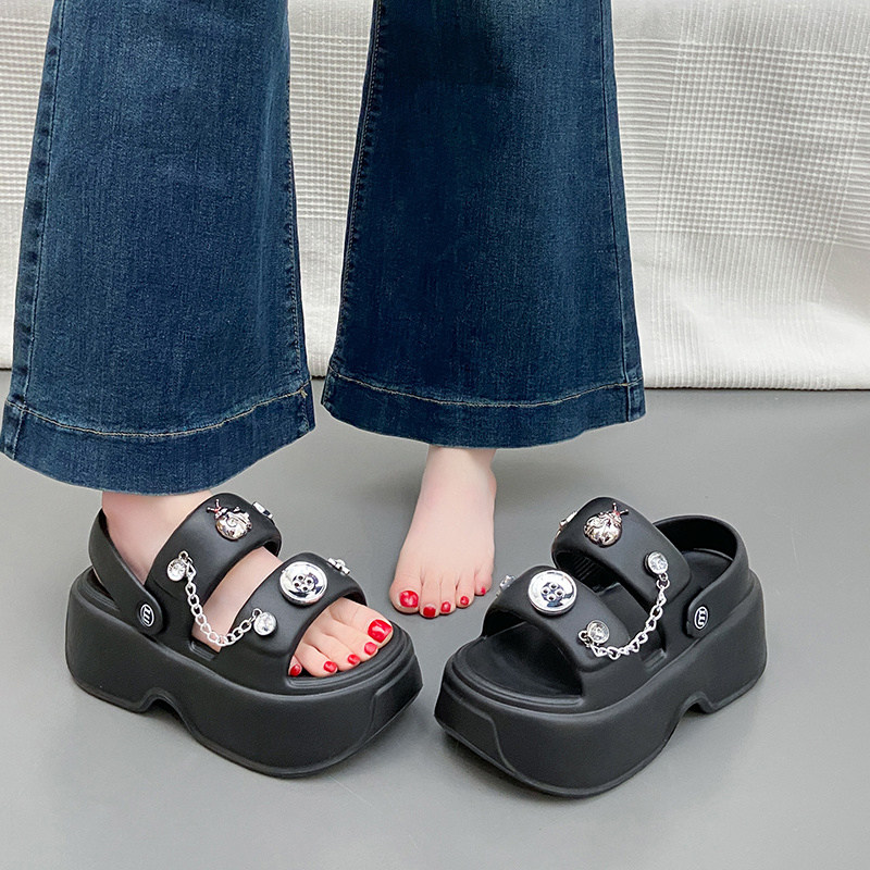 2025新款小个子内增高8cm凉拖鞋女厚底超轻防滑小皮鞋小码夏镂空