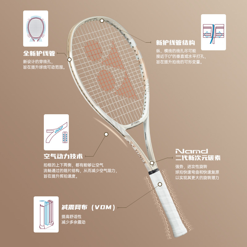 YONEX尤尼克斯新款VCORE沙滩米黄莱巴金娜同款男女专业yy网球拍