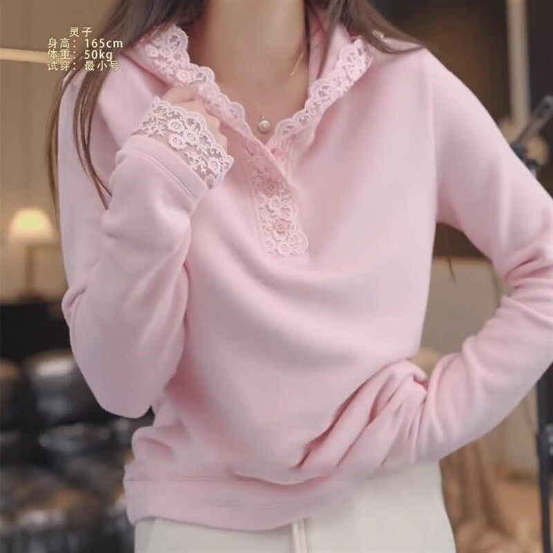 粉色双面德绒连帽打底衫女装秋冬2025新款内搭可外穿加厚长袖上衣