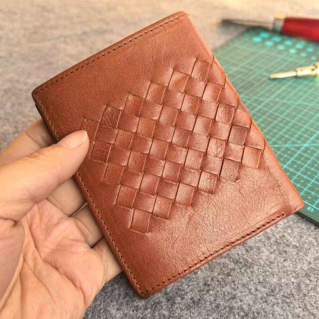 复古头层牛皮男士真皮钱包短款钱夹手工编织手拿包驾驶证卡包收纳