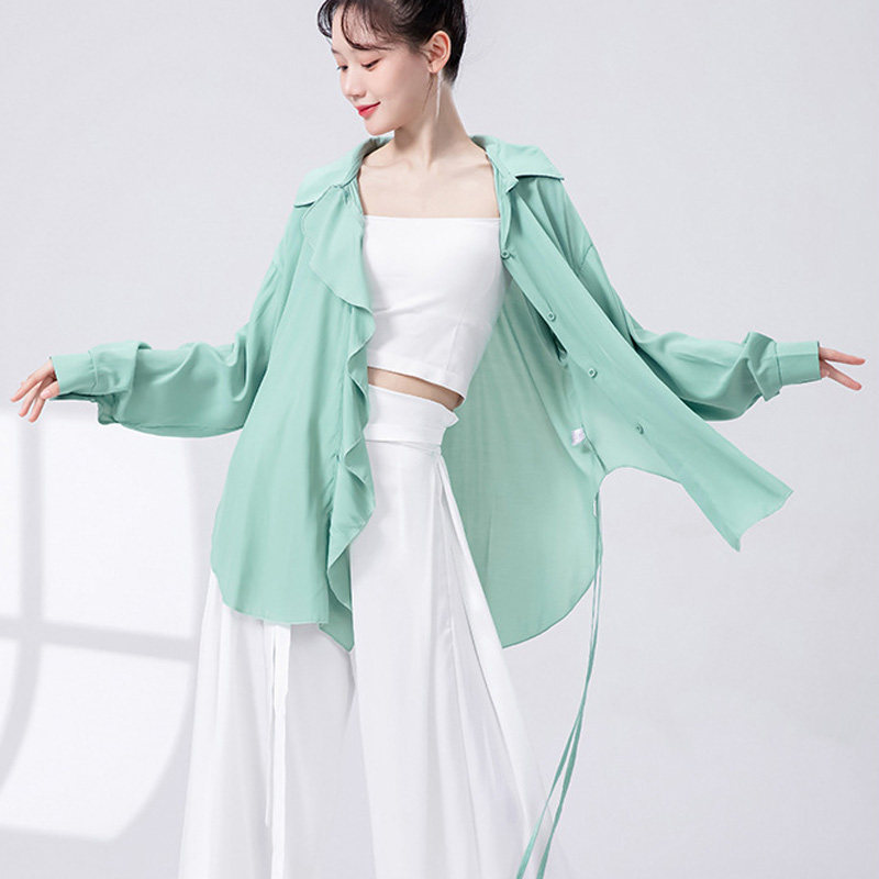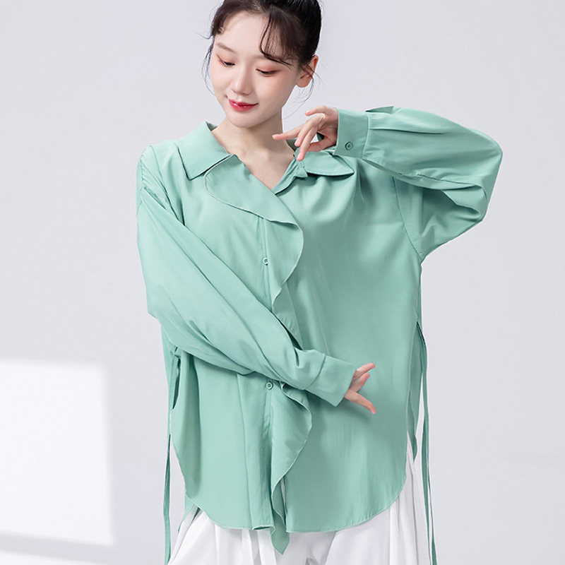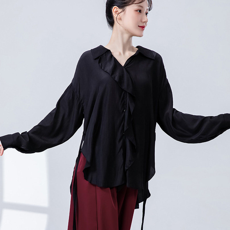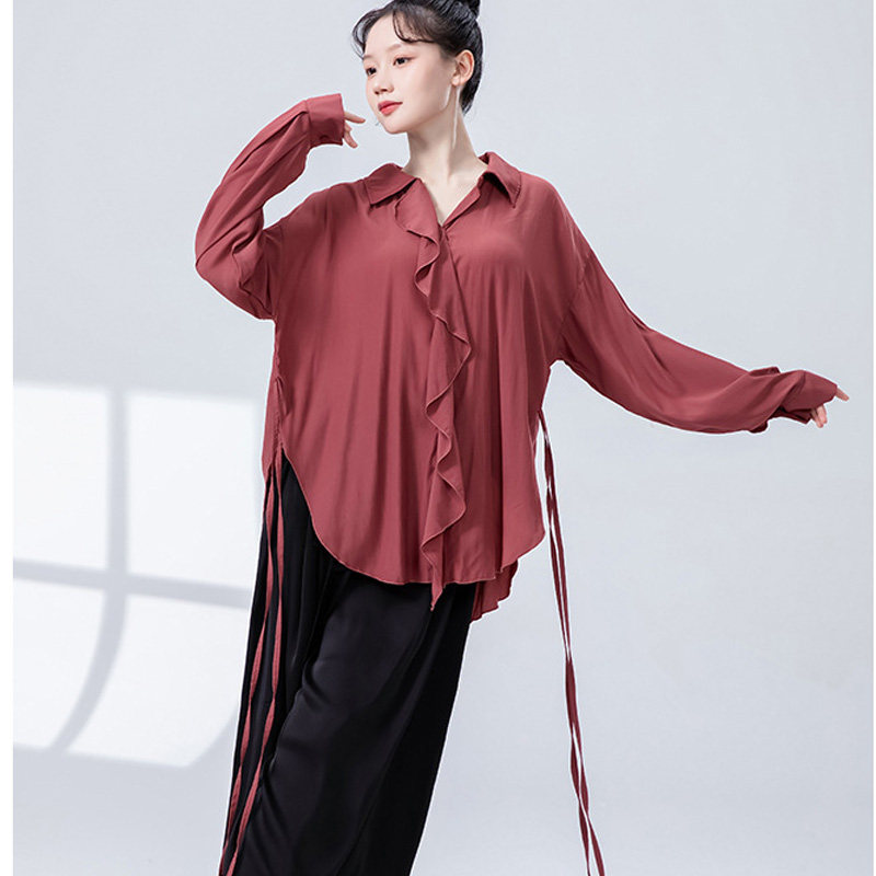 现代舞宽松荷叶边衬衫练功服长袖飘逸衬衣舞蹈服中国舞成人演出服