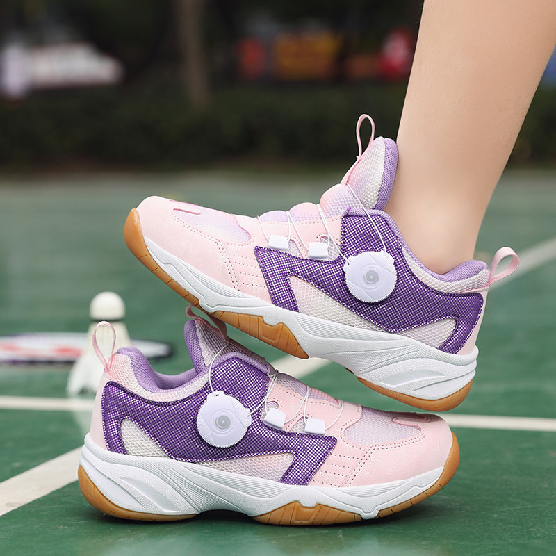 真碳板专业儿童羽毛球鞋旋转扣防滑网面童鞋透气运动鞋男童女童