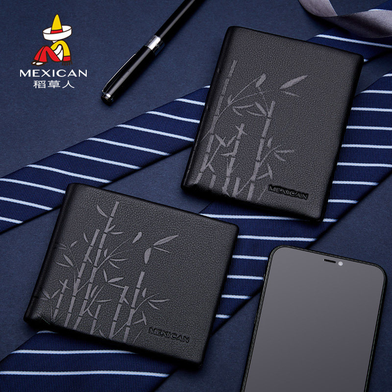 稻草人男士钱包短款真皮简约潮牌年轻人钱夹时尚新款礼盒正品皮夹