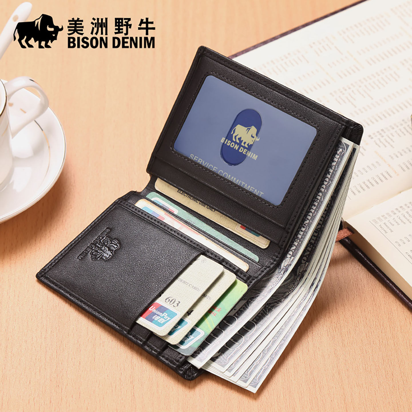 美洲野牛男士钱包短款真皮大容量头层牛皮钱夹2026新款皮夹零钱包