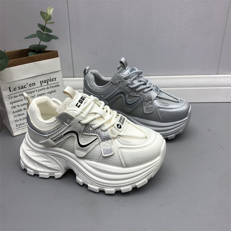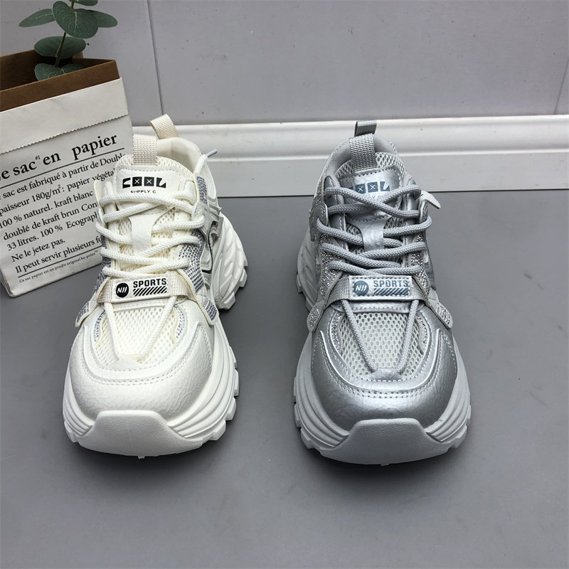 工厂清仓断码春季女鞋厚底老爹鞋透气网面系带运动休闲鞋舒适增高