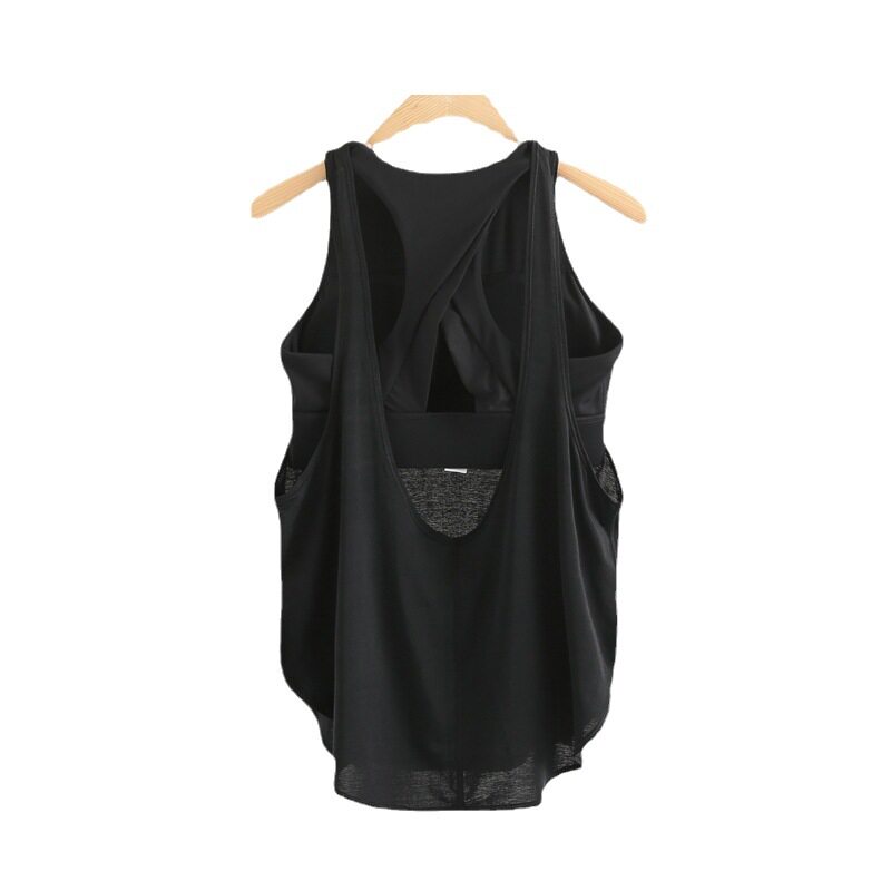 带胸垫运动背心女士健身内衣中长款瑜伽衣服外穿罩衫宽松无袖上衣