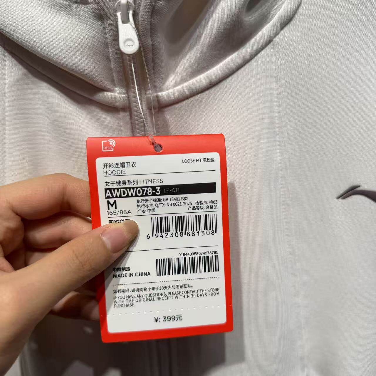 李宁外套女子2026春季新款健身系列舒适休闲开衫连帽卫衣AWDW078