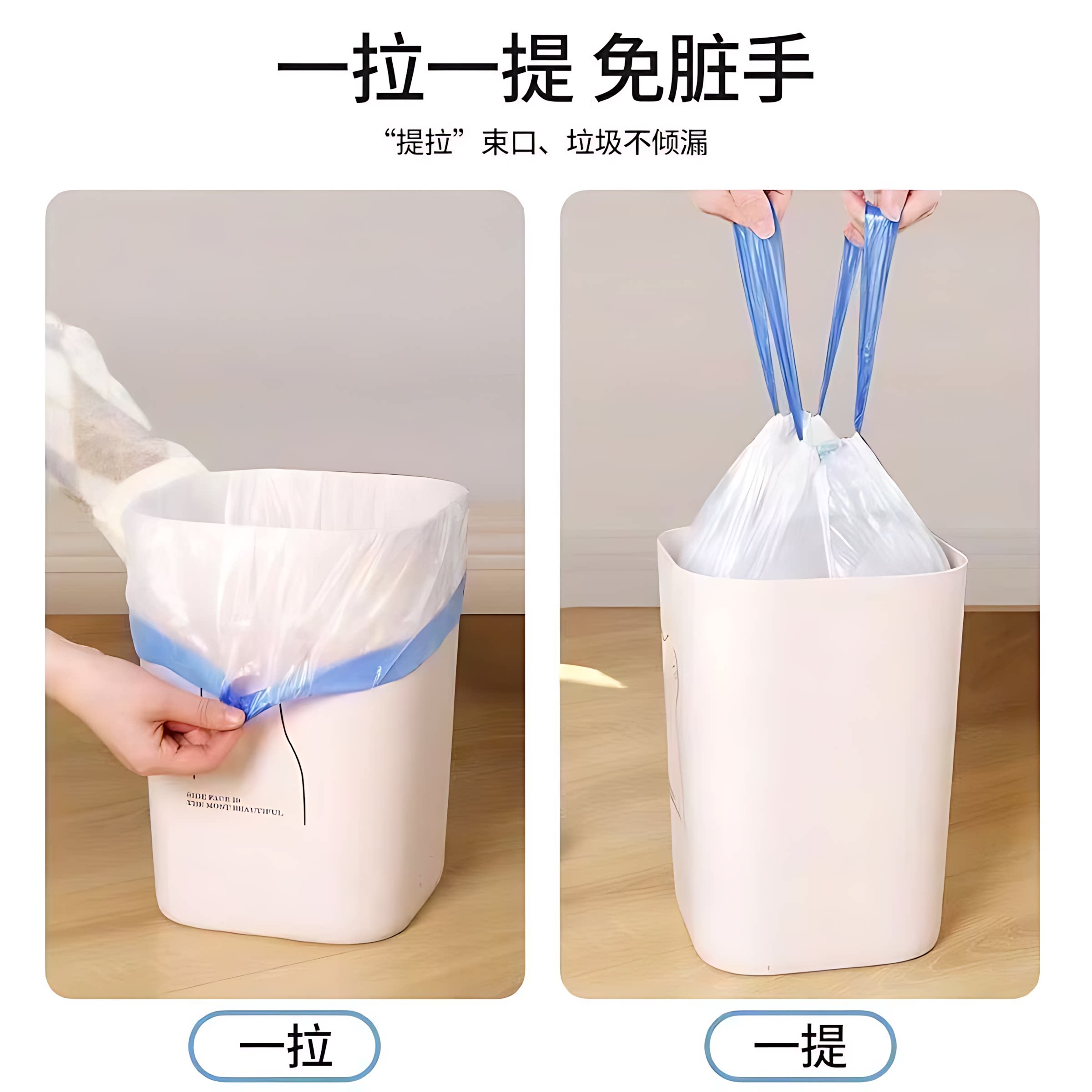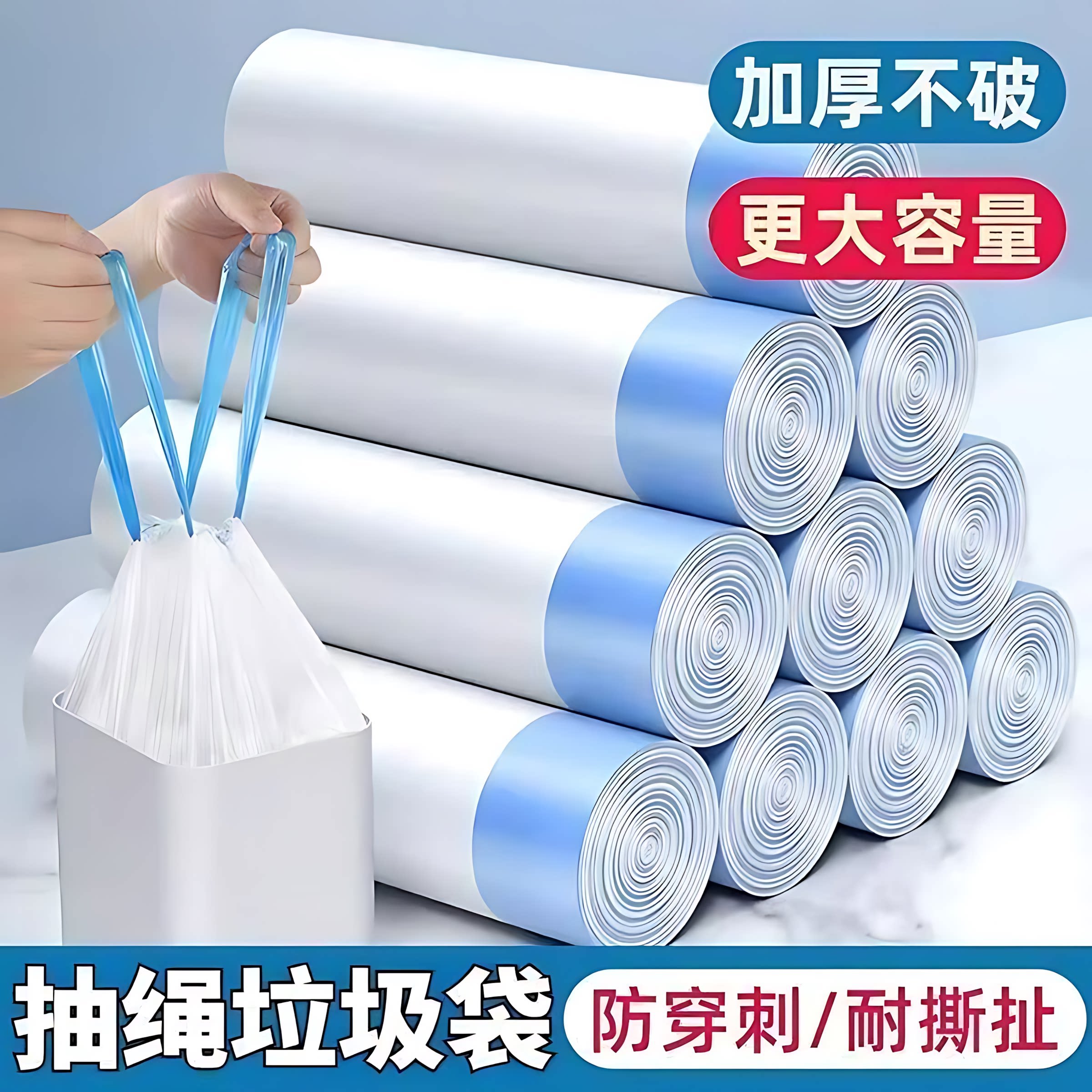 加厚抽绳垃圾袋家用手提式白色大号便携自动收口厨房清洁塑料袋子