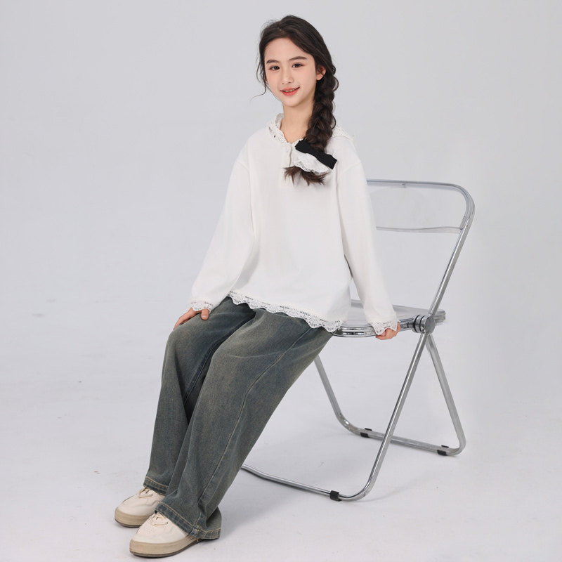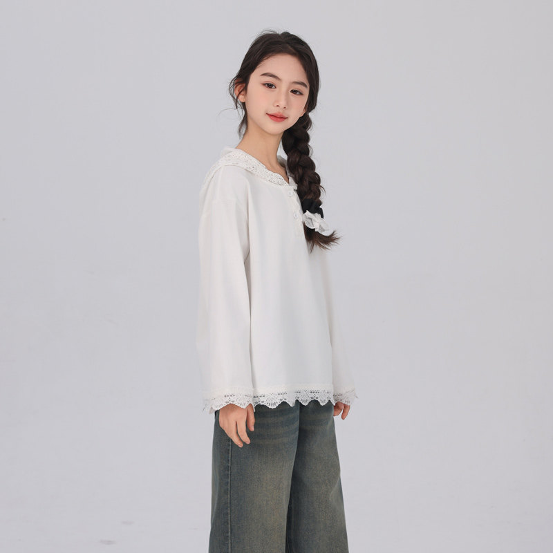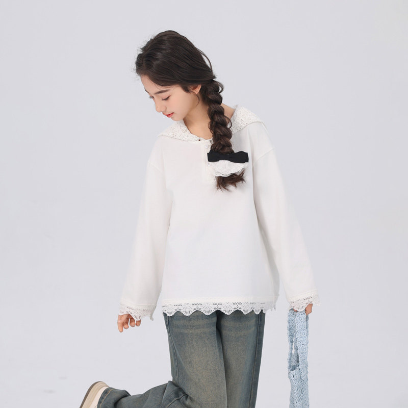 女童打底衫内搭春秋儿童2026新款长袖t恤超好看白色纯棉春装上衣T