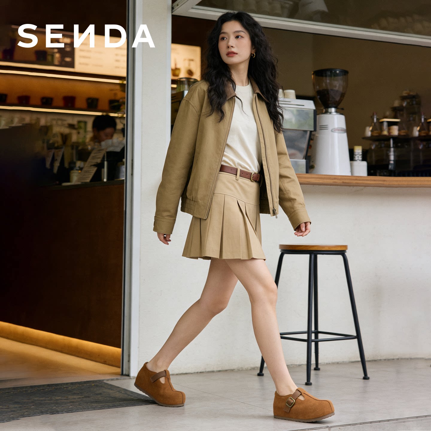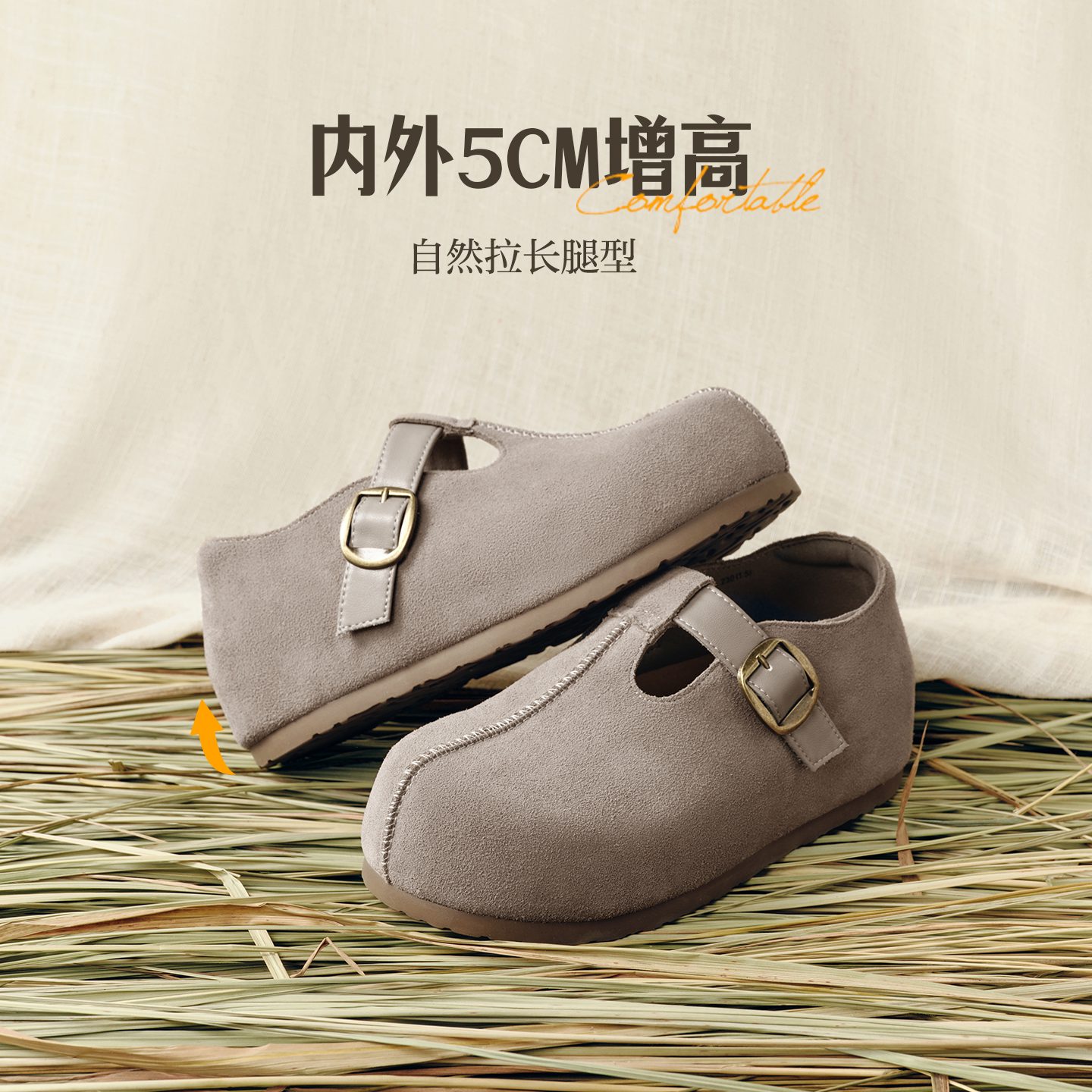 森达灰色勃肯鞋厚底冬女鞋26春新款舒适内增高时尚超火绝美博肯鞋