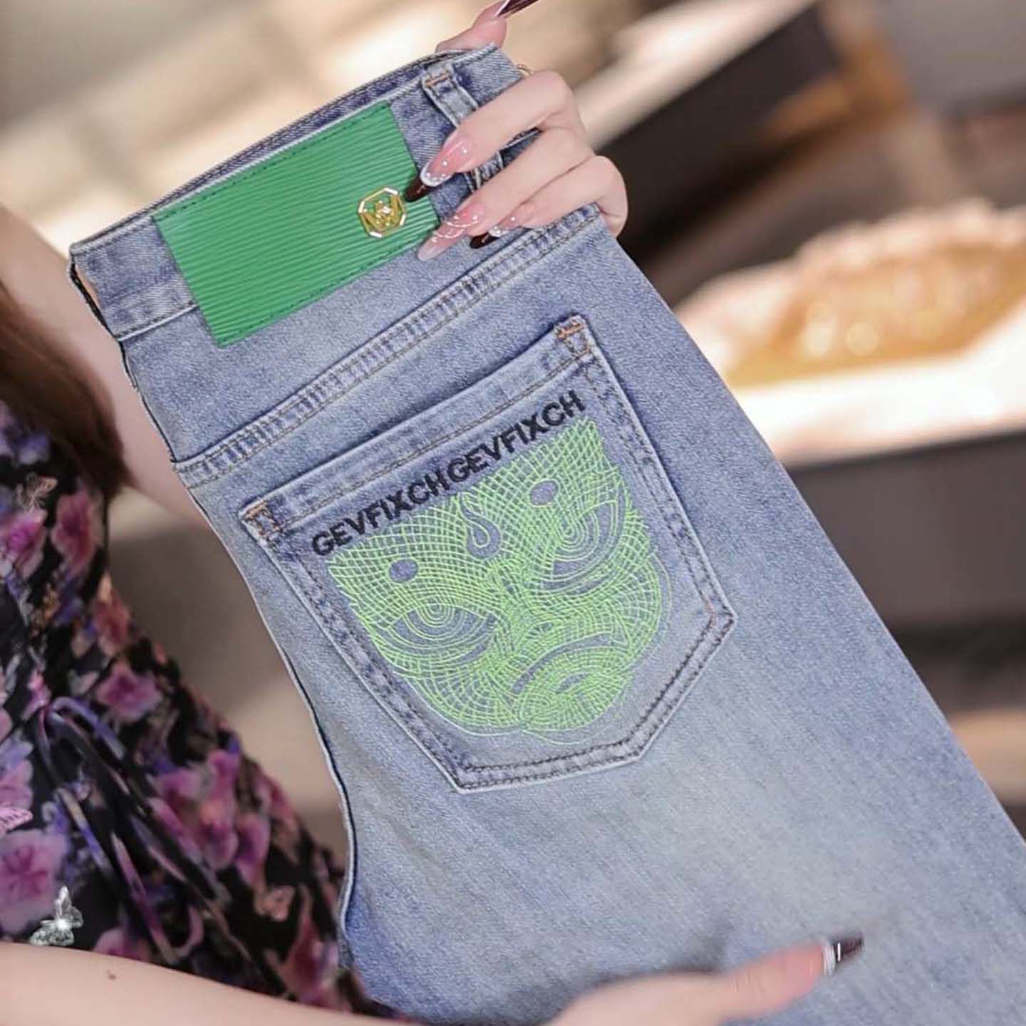 高端潮牌刺绣牛仔裤男款2026新款春夏修身小直筒弹力轻奢男士裤子