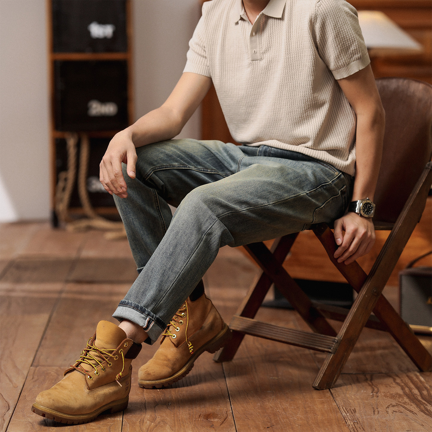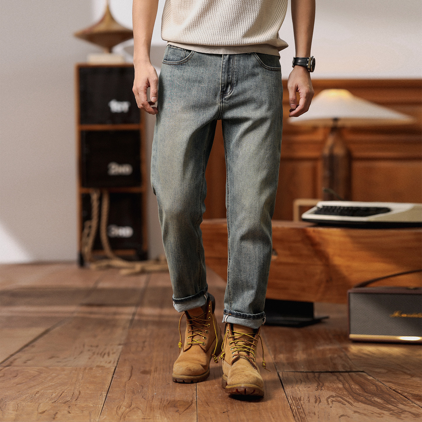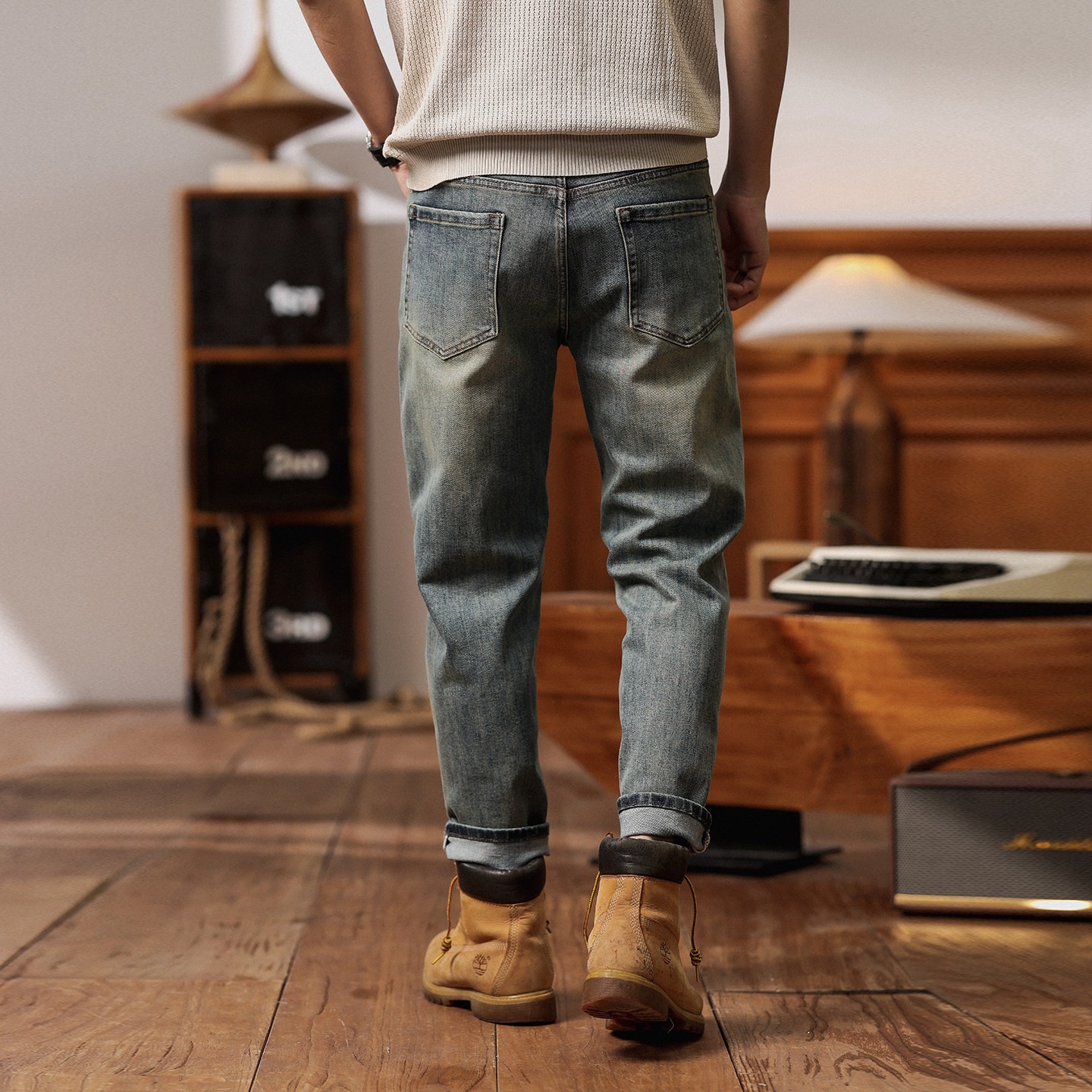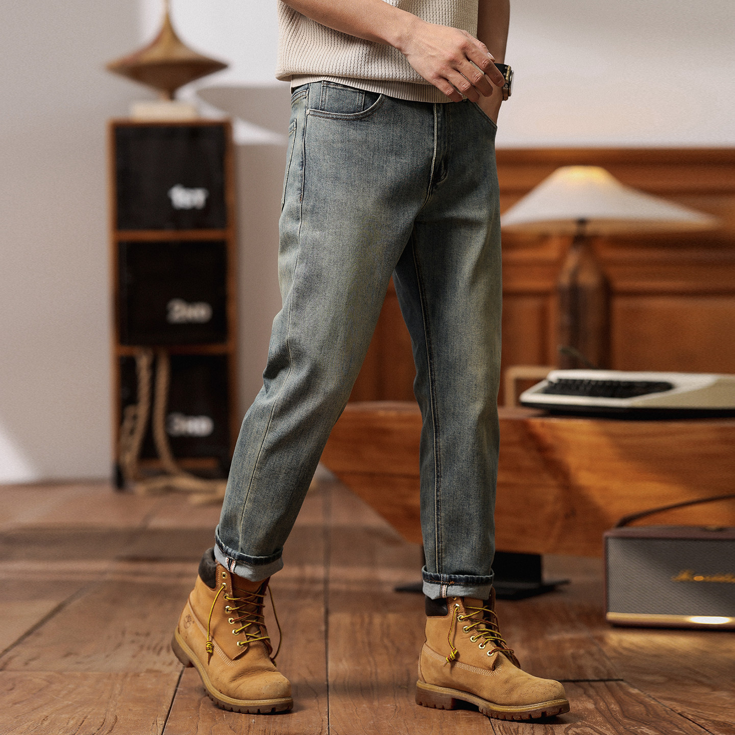 美式复古怀旧蓝休闲牛仔裤男款修身小直筒弹力九分裤男2026新款春