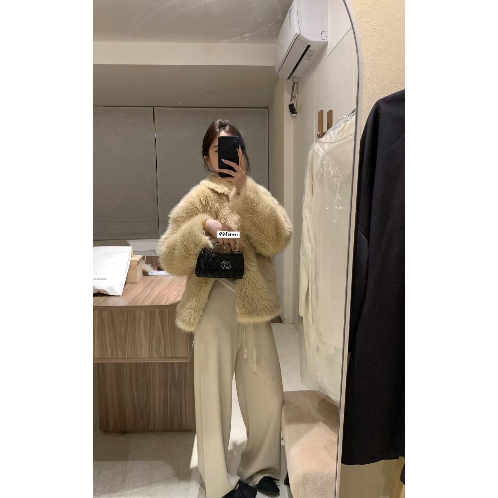 METWO 托斯卡纳皮毛一体夹棉外套女款短款2024冬季新款高级感大衣