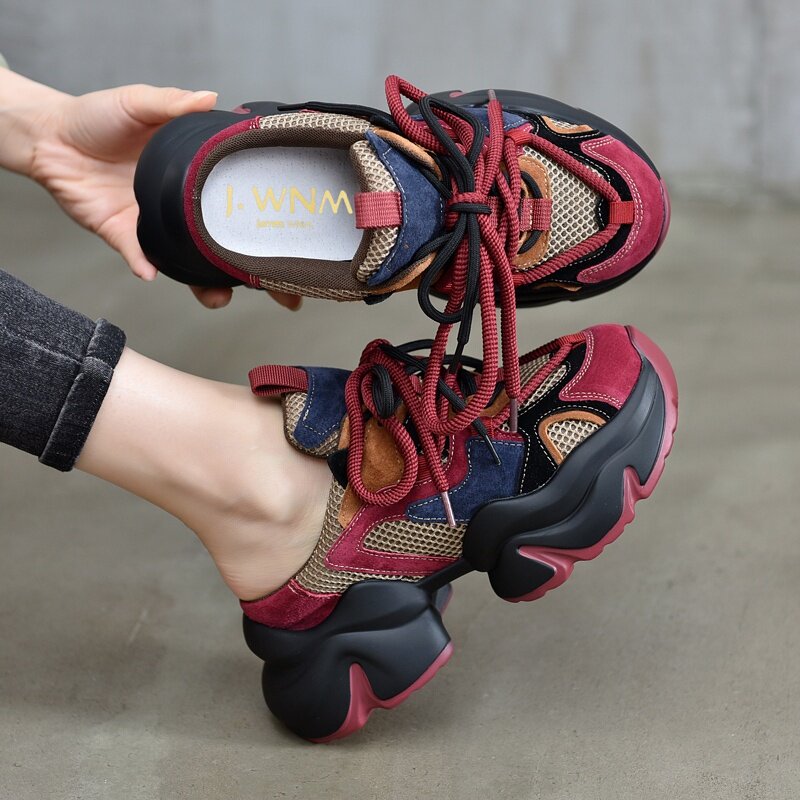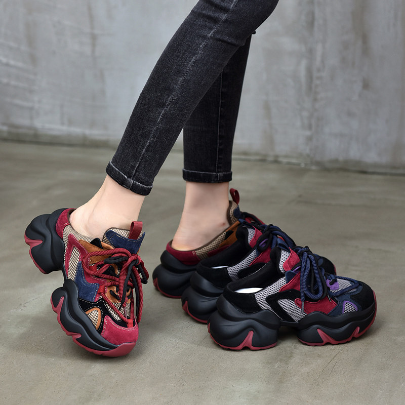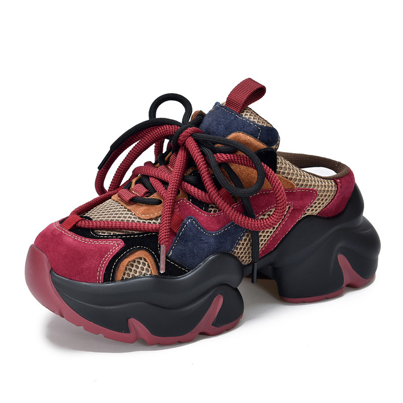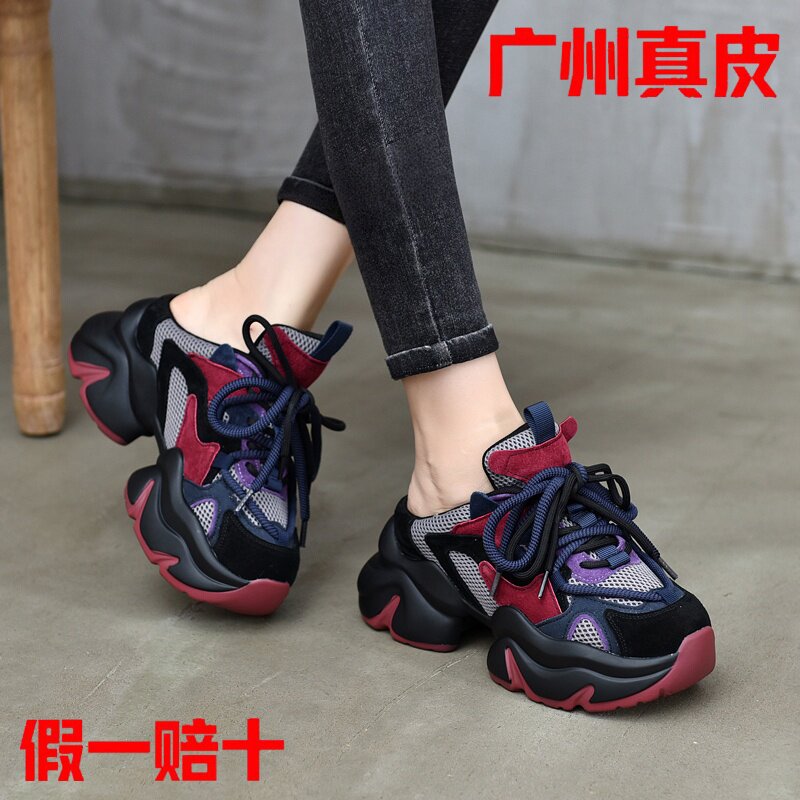 真皮老爹鞋女2026夏季新款包头拖增高透气网面厚底运动休闲鞋