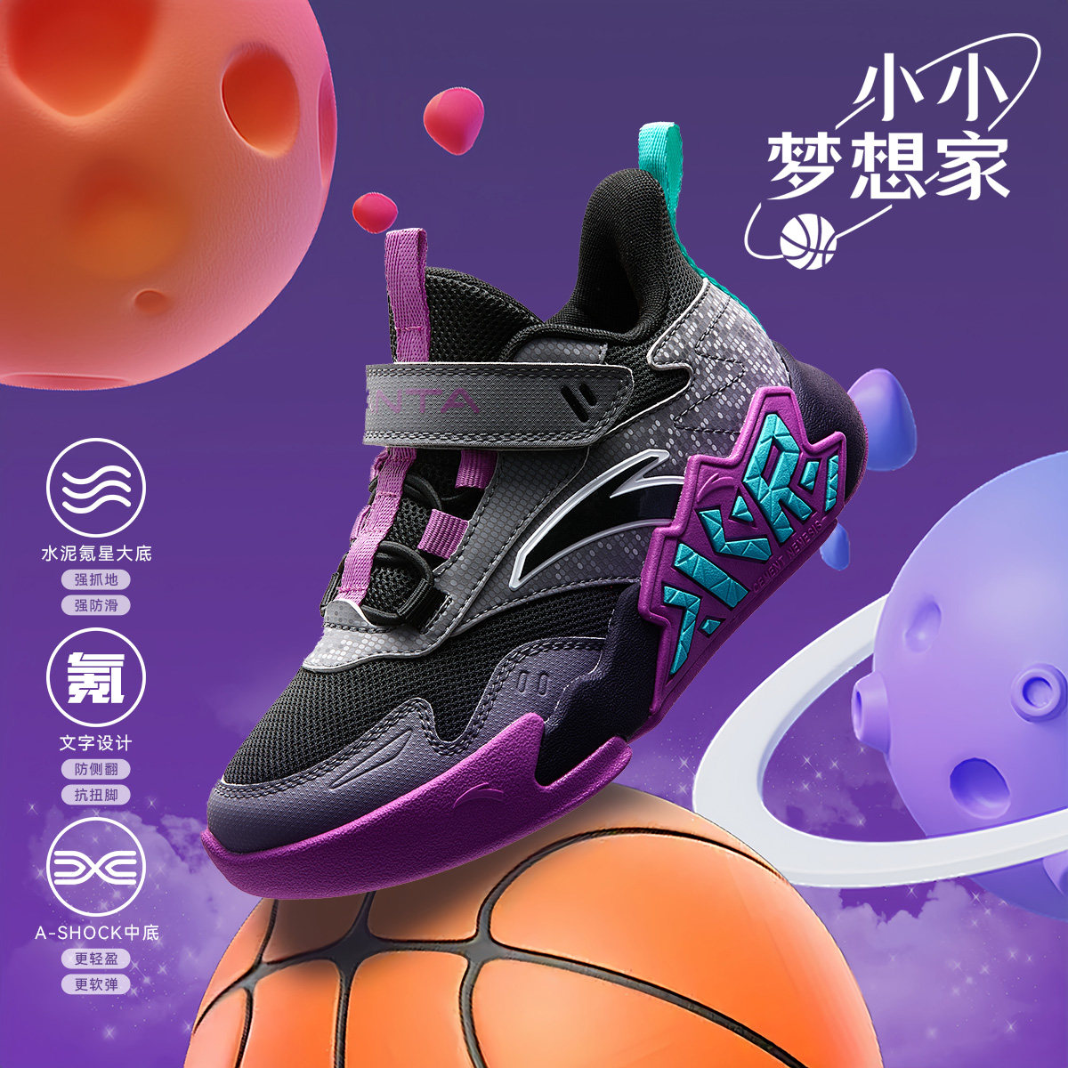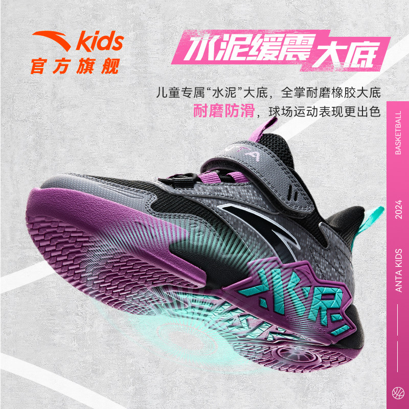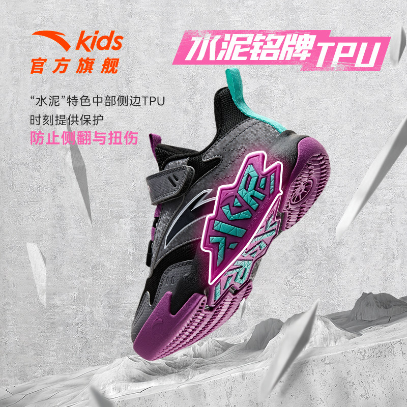 安踏儿童篮球鞋男童水泥氪星专业训练小童运动鞋网面透气耐磨鞋子
