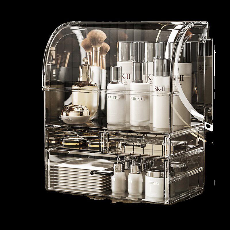 化妆品收纳盒防i尘透明桌面梳妆台大容量护肤置物架亚克力箱高级