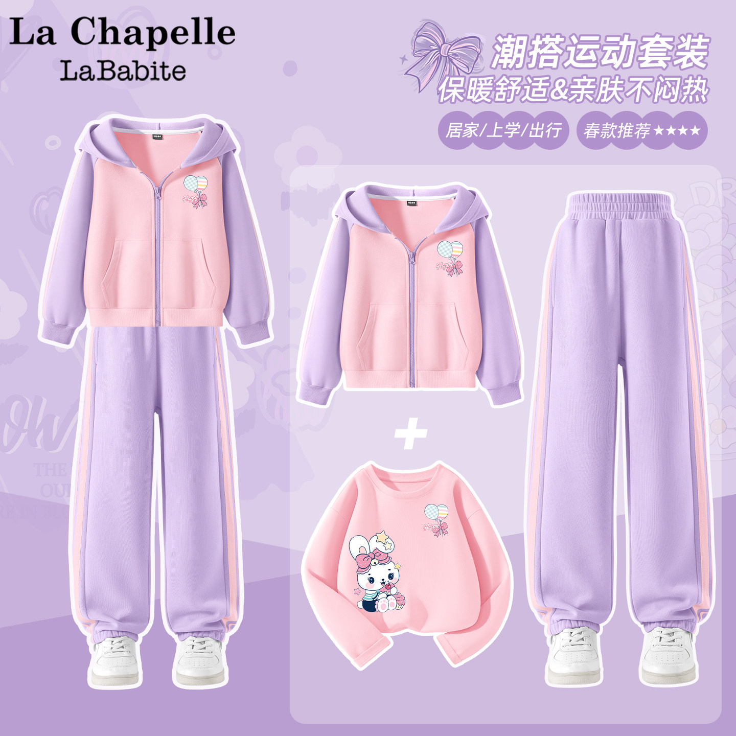 拉夏贝尔女童春装套装2026新款春季运动服三件套儿童春秋童装衣服