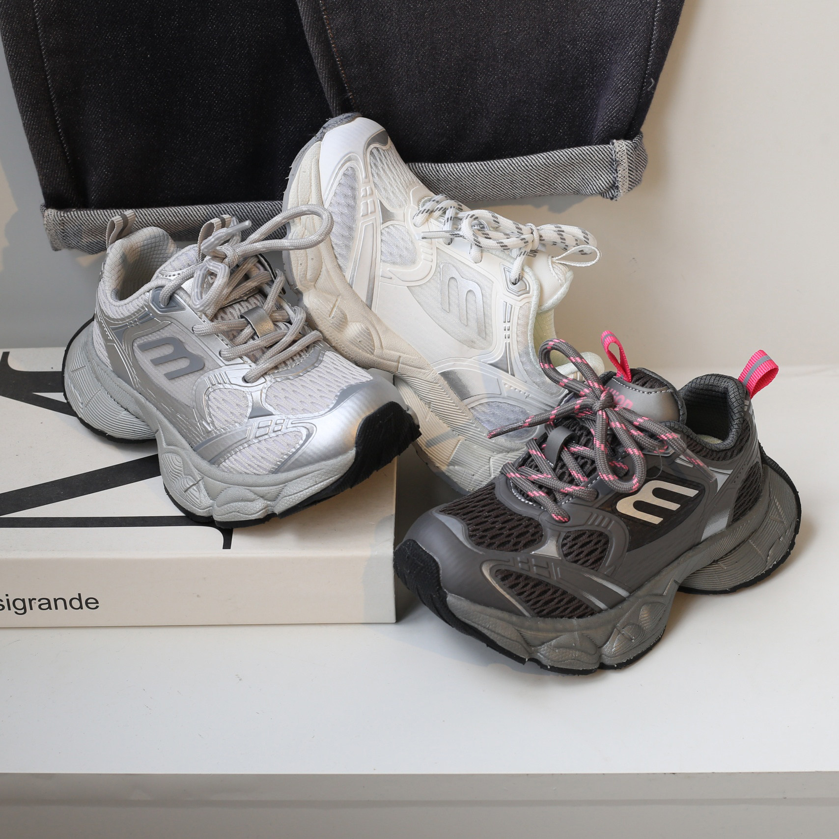 春款亲子擦色做旧童鞋儿童运动鞋男童鞋子轻便跑步鞋女童潮老爹鞋