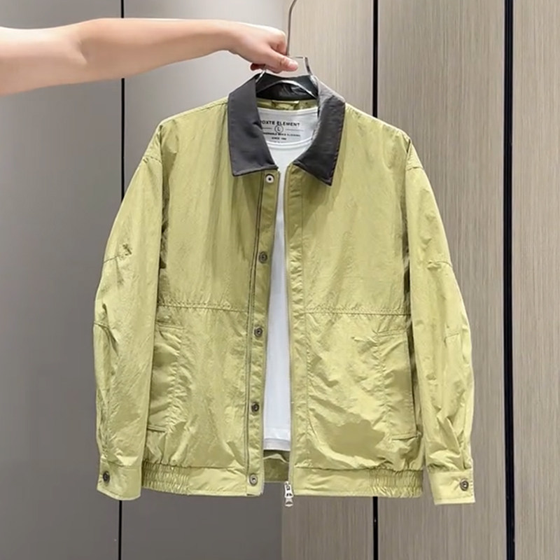 老钱风轻奢潮牌男士外套撞色翻领设计感时尚宽松夹克男款春季薄款