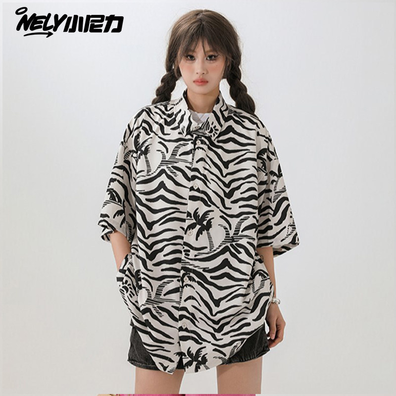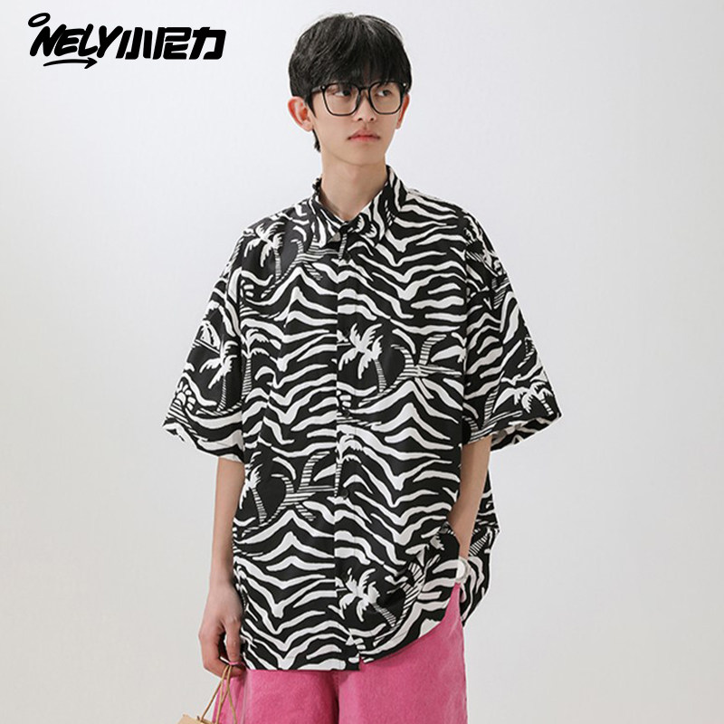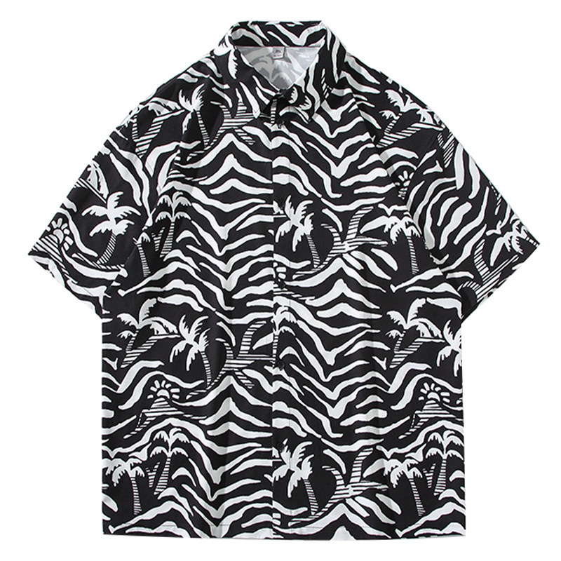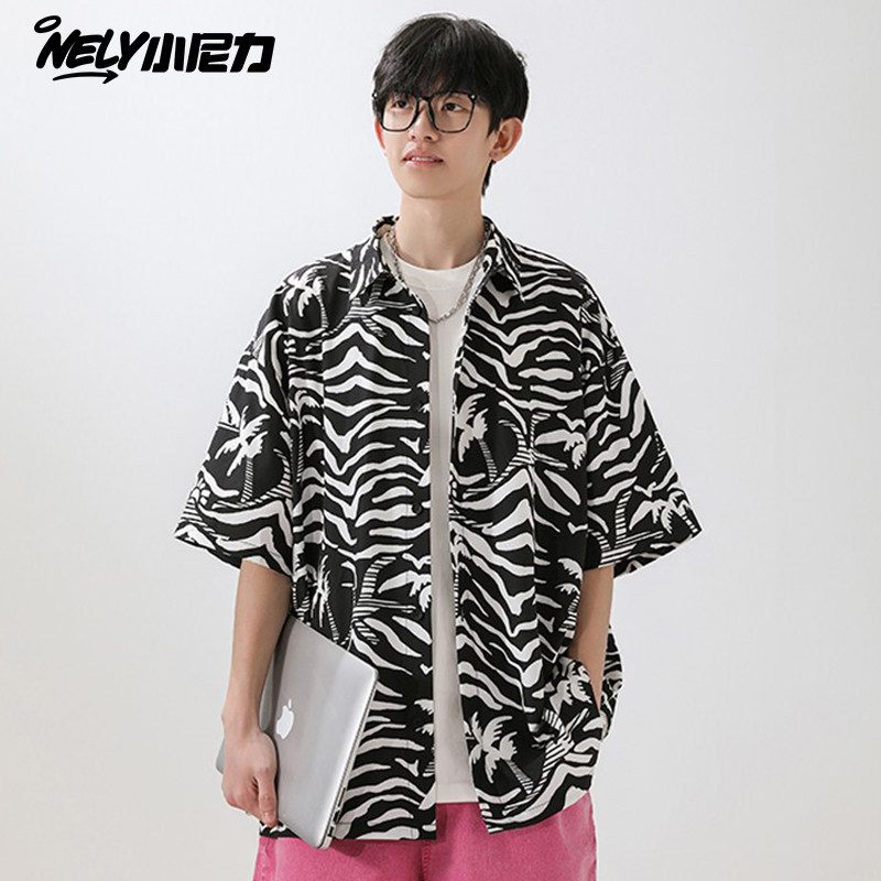 薄款冰丝花衬衫男款春季美式春威夷海滩短袖衬衣潮牌宽松休闲外套