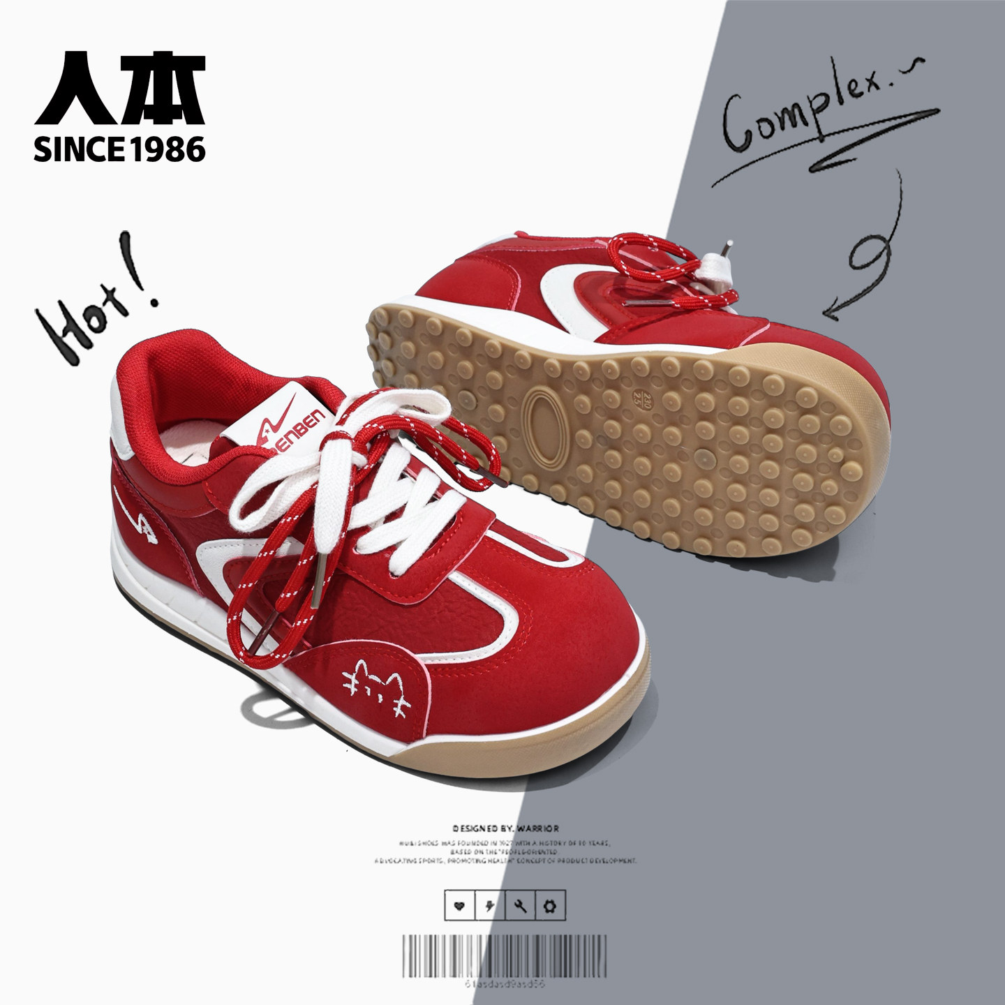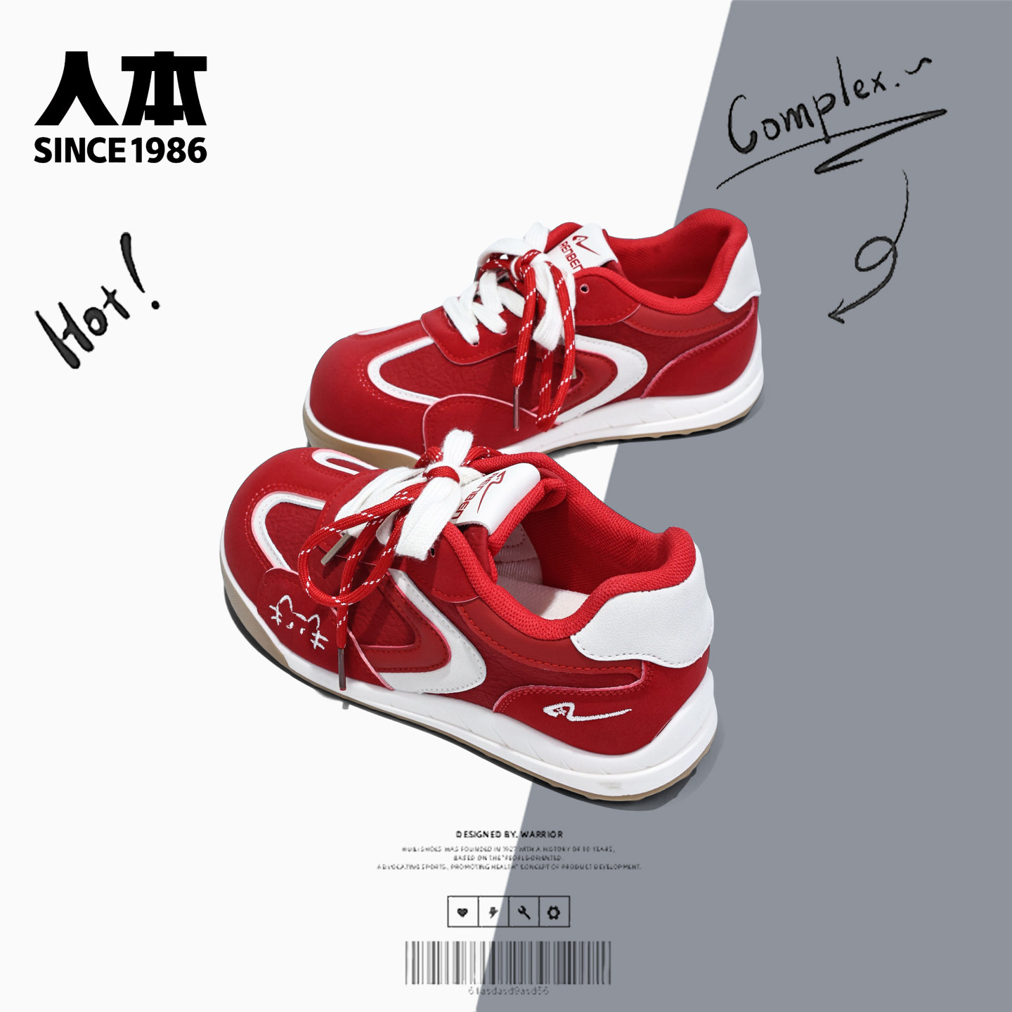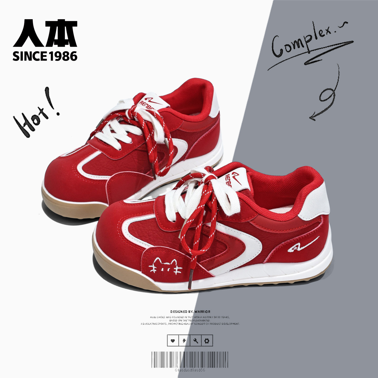 人本新年红女鞋学生百搭德训鞋女2026春季新款厚底休闲鞋子板鞋潮