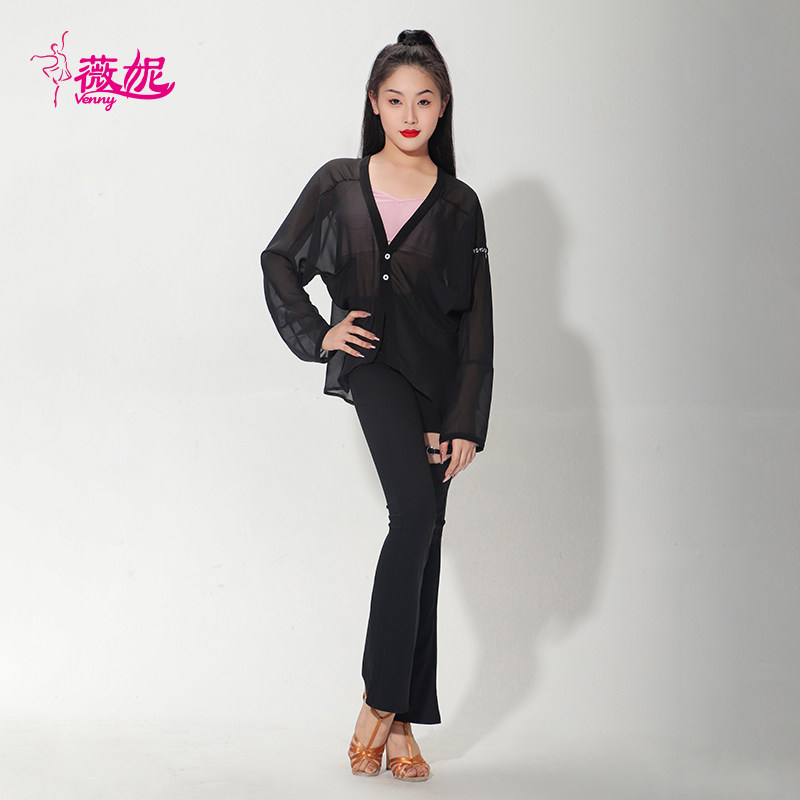 薇妮拉丁舞服新款专业练功服吊带上衣罩衫外套裤子成人套装设计感