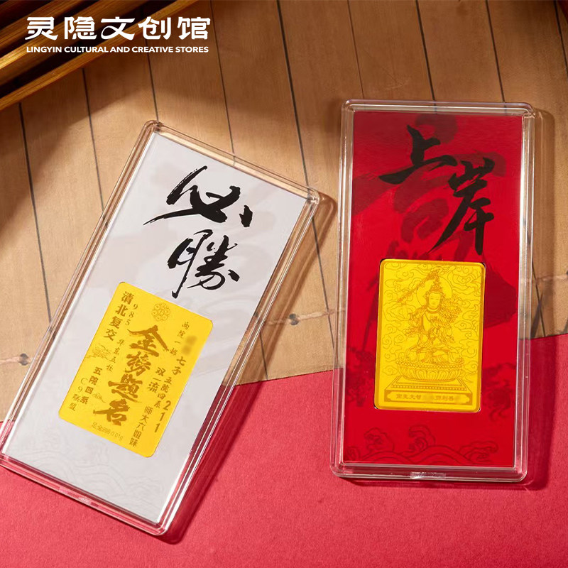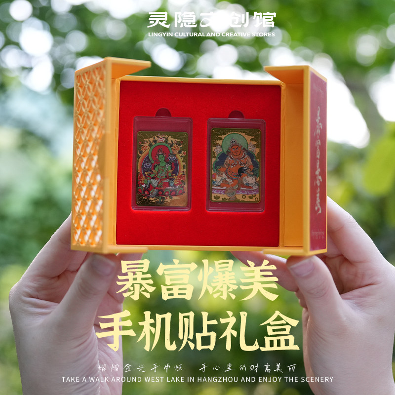 「上岸」杭州灵隐金榜题名黄金手机贴送学生高考寓意好的礼物