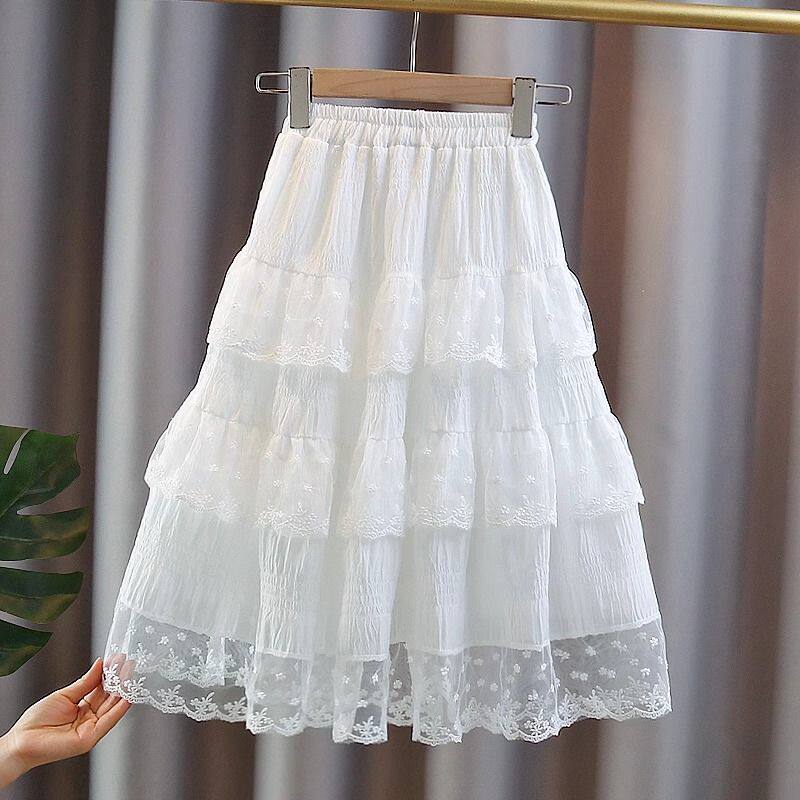 女童半身裙春夏女孩甜美白色长款半裙中大童超仙好看薄款蛋糕裙子