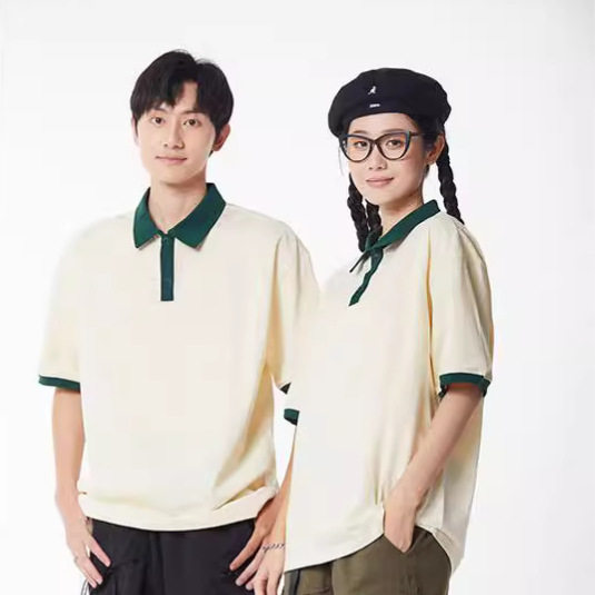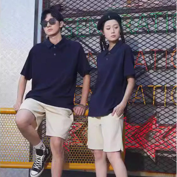 定制t恤班服POLO衫工作服文化团体衫潮牌落肩翻领短袖纯棉餐饮