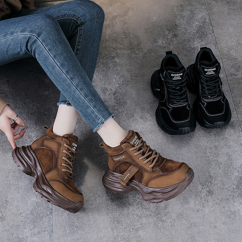 软底真皮妈妈高帮休闲运动防滑不累脚女鞋女轻便透气加绒厚底冬季