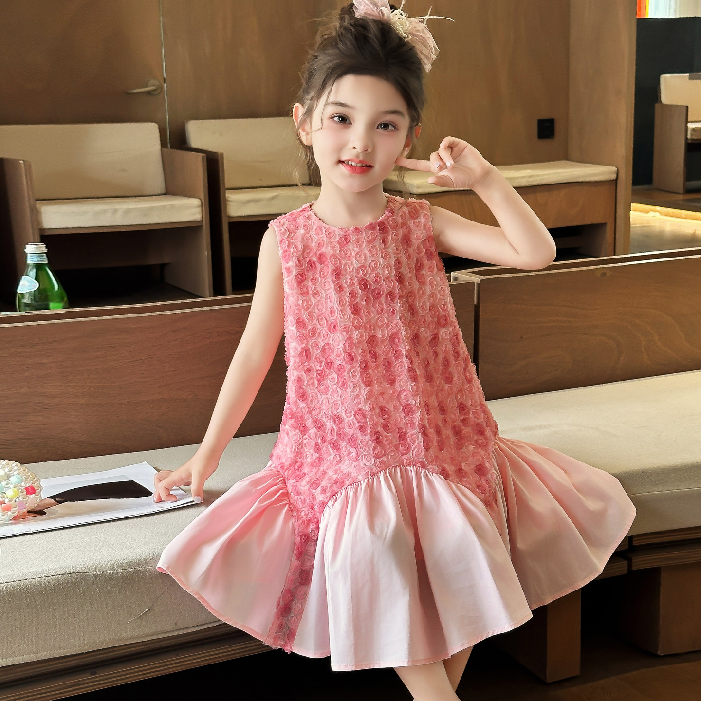 女童连衣裙夏季2026新款儿童洋气时髦薄款公主裙夏装女孩网红裙子