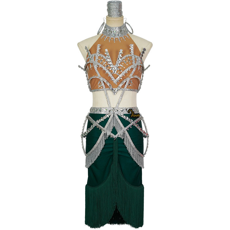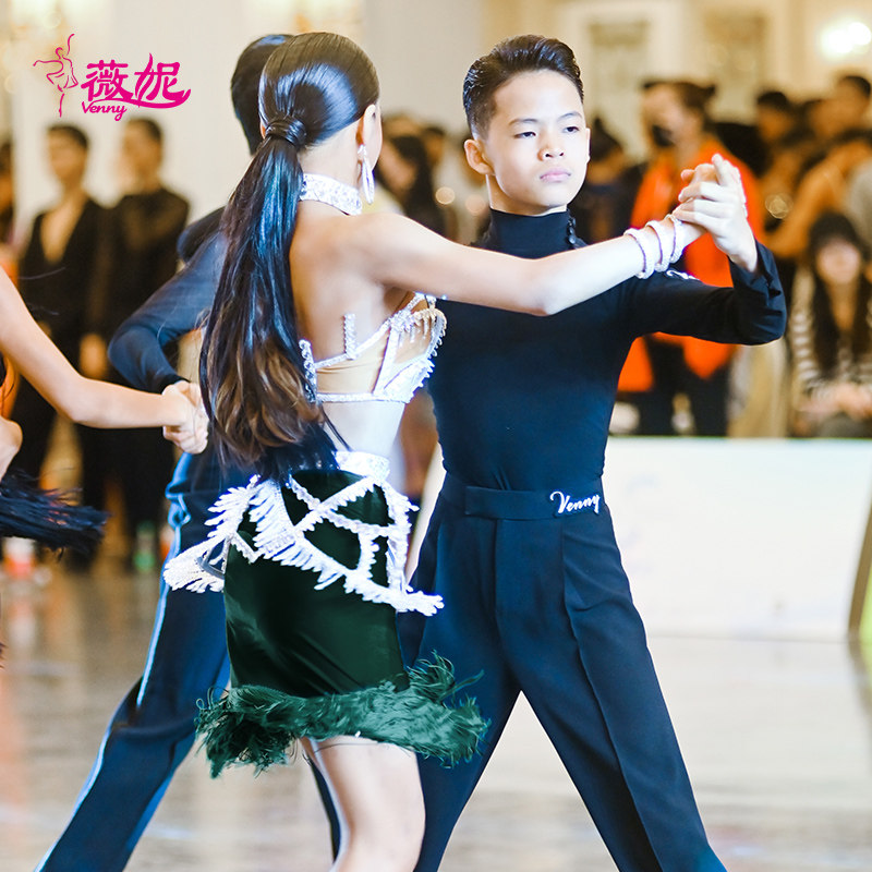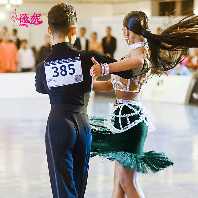 薇妮拉丁舞服演出花服比赛专用服装女儿童成人流苏连衣裙表演钻服