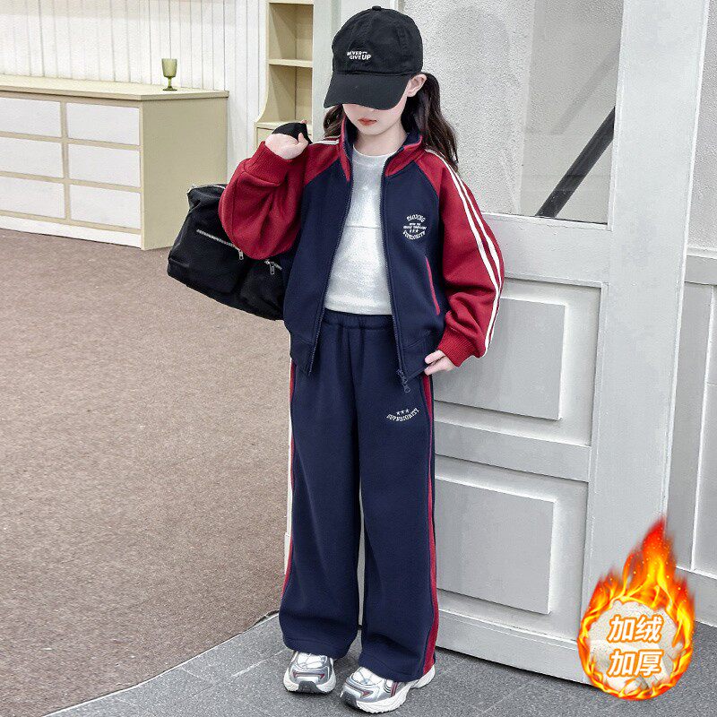 女童秋冬套装2025新款洋气时髦儿童加绒加厚运动装炸街休闲两件套