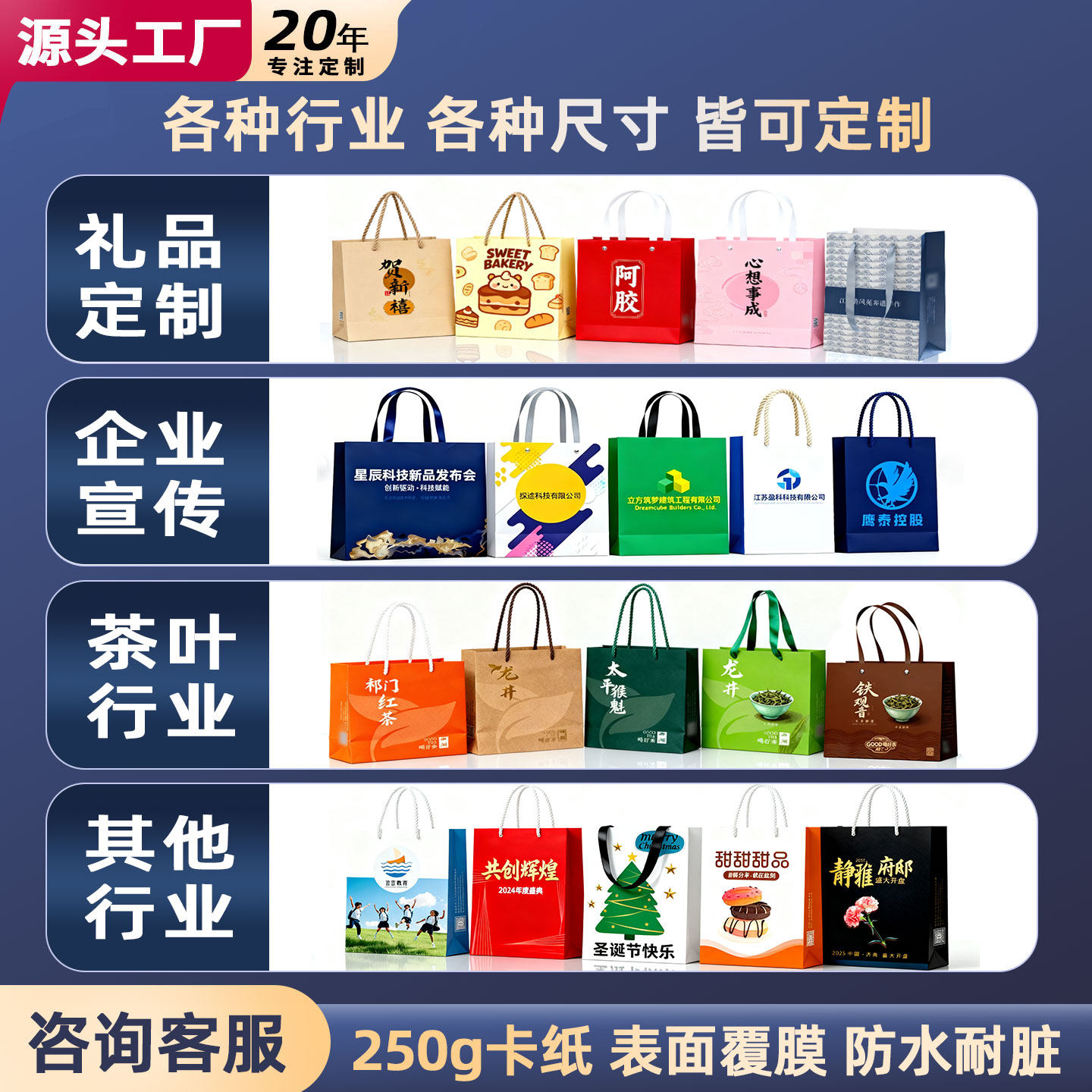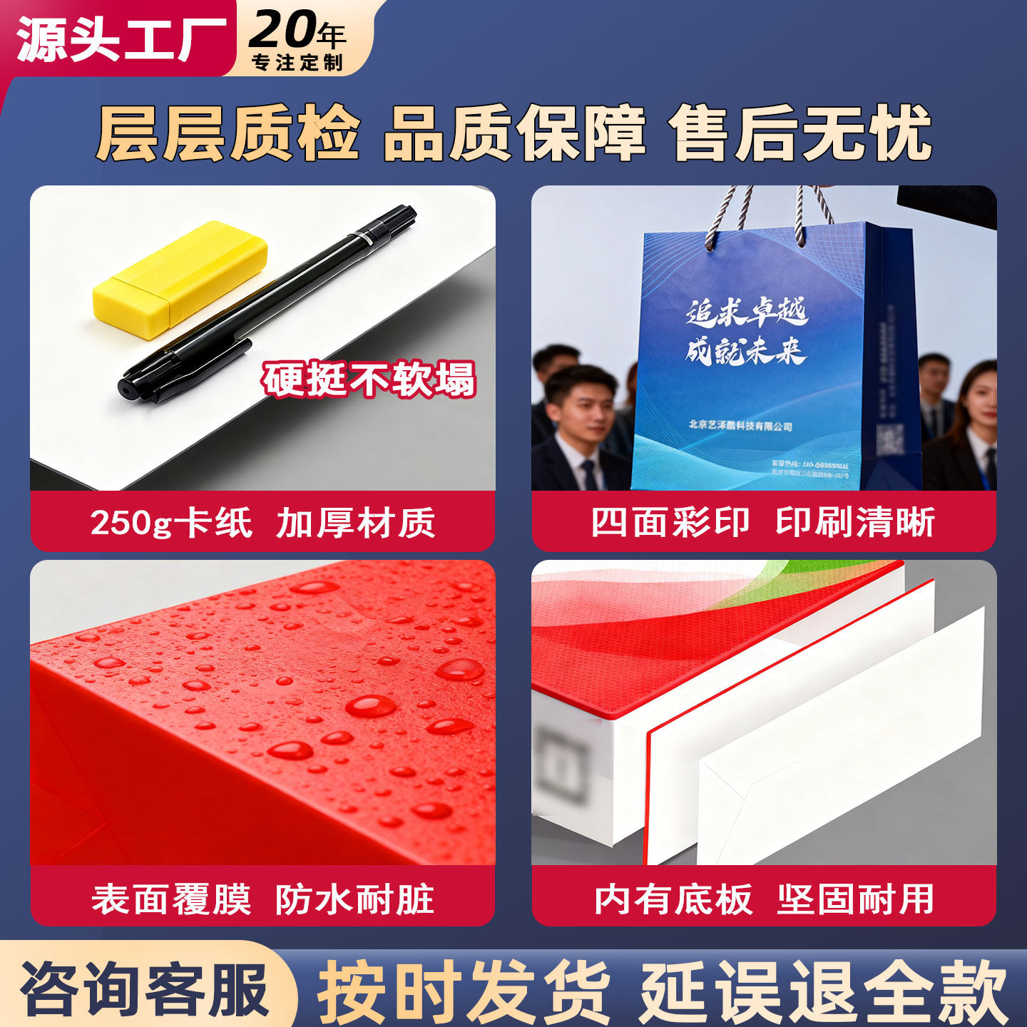 手提袋定制茶叶礼品袋定做logo高档红色牛皮纸袋礼袋通用袋子铆钉