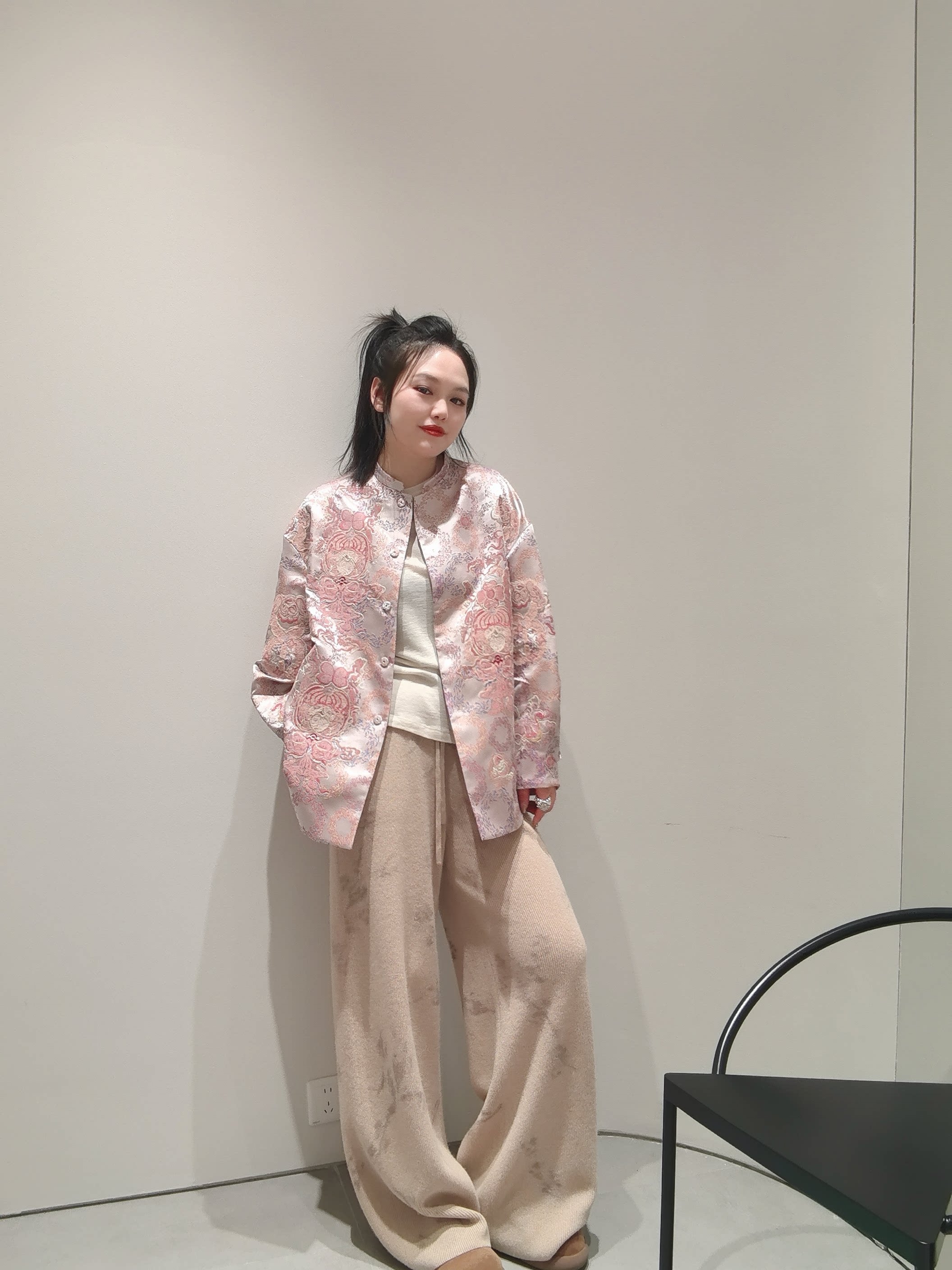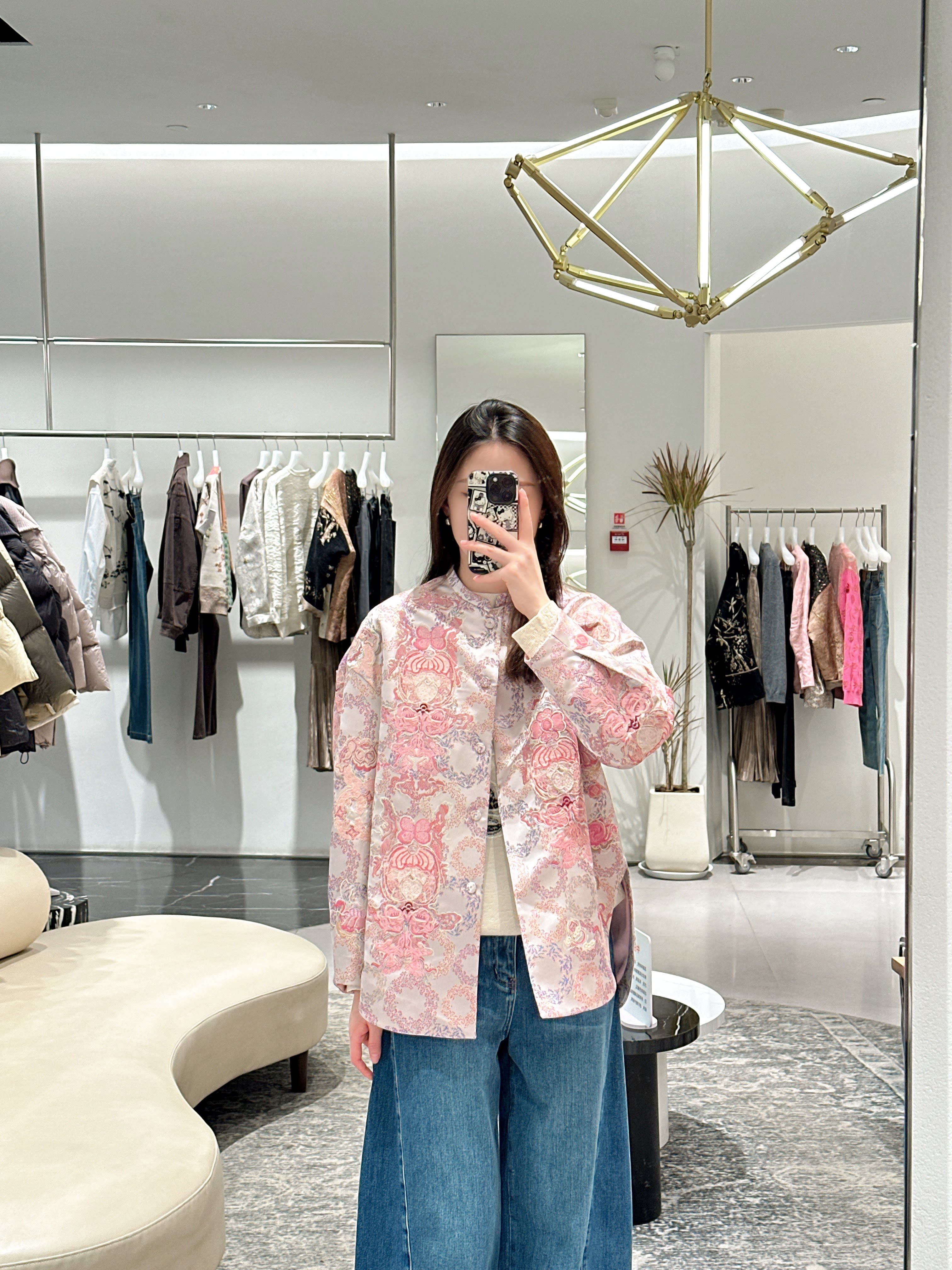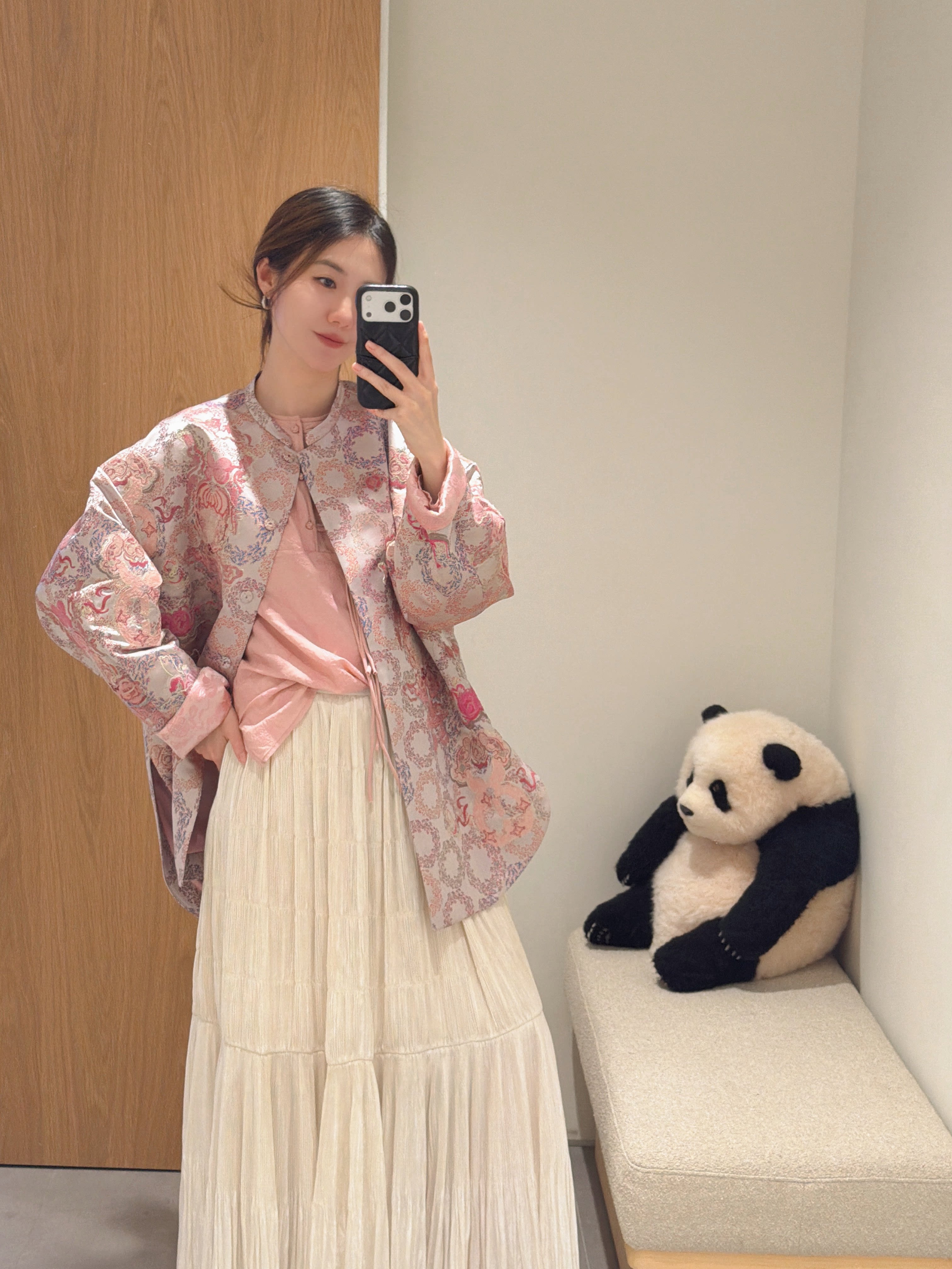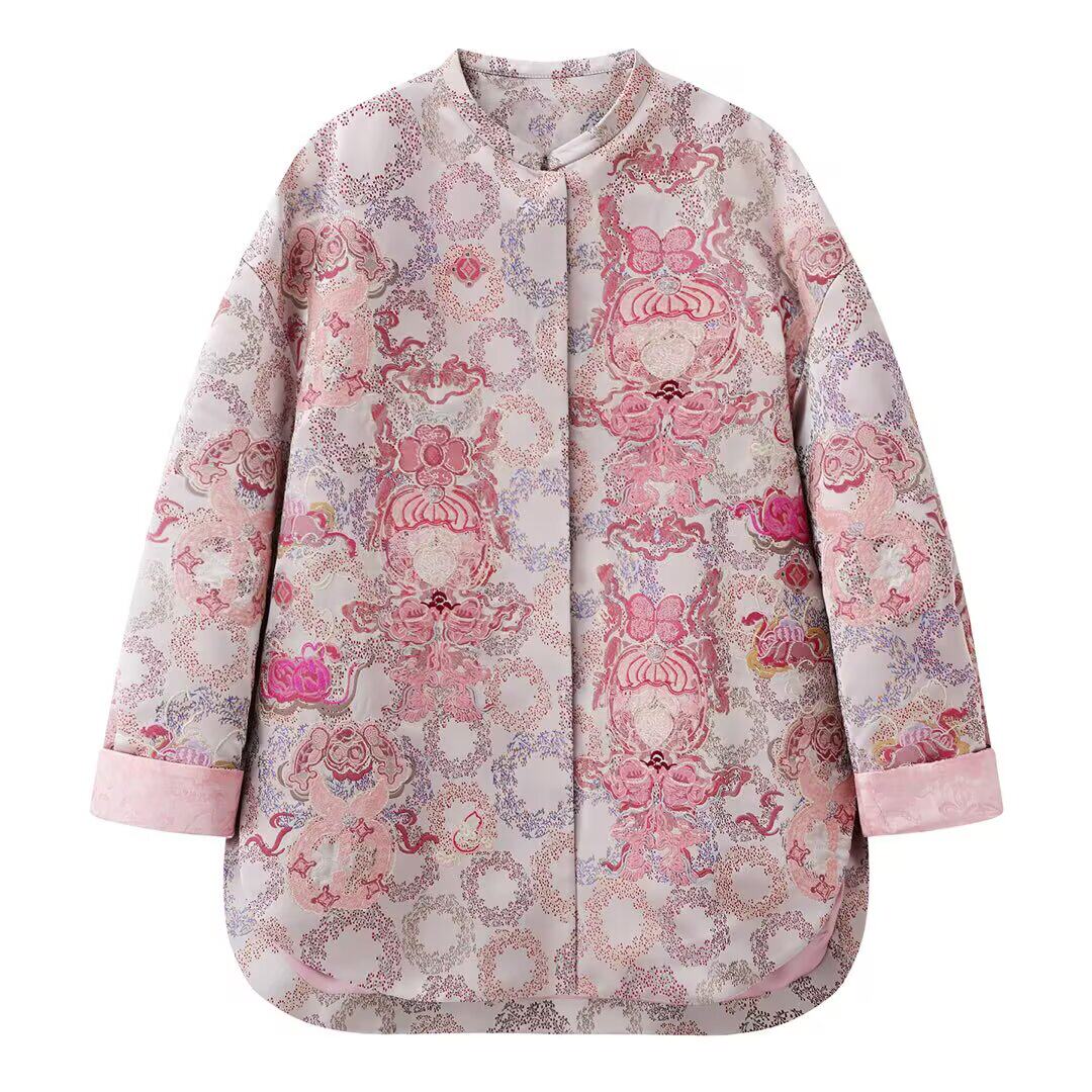刘雯同款2026春季新款新中式国风复古立领苹果花提花外套上衣