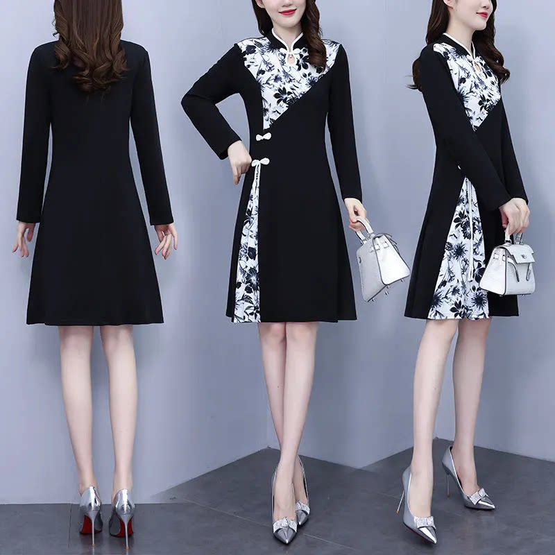 新中式大码300斤女装中长款连衣裙改良旗袍显瘦遮肚拼接胖mm裙子