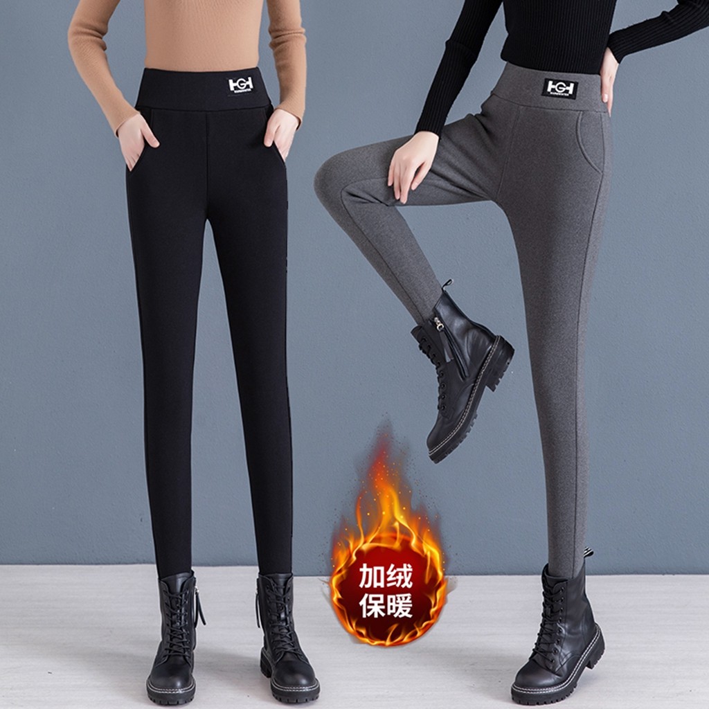 加绒加厚打底裤女外穿冬季裤子高腰显瘦保暖裤羊羔绒高弹力妈妈裤
