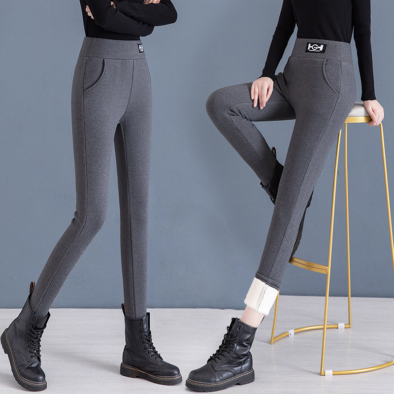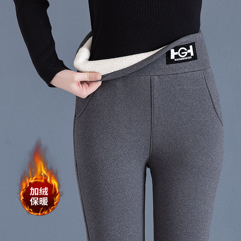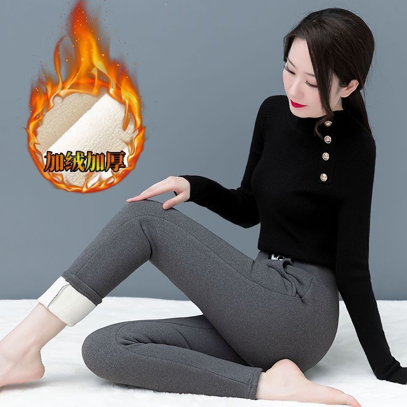 羊羔绒高腰加绒打底裤加厚女秋冬天保暖长裤外穿提臀外穿小脚裤子