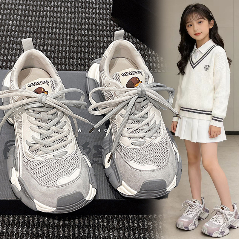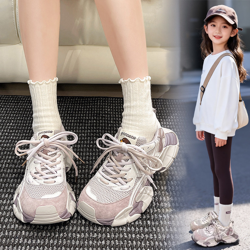 女童运动鞋2026新款春夏季透气软底网红中大童网面老爹鞋女孩鞋子
