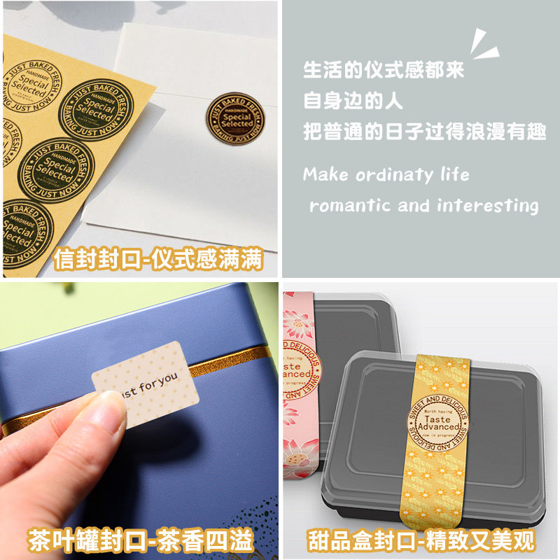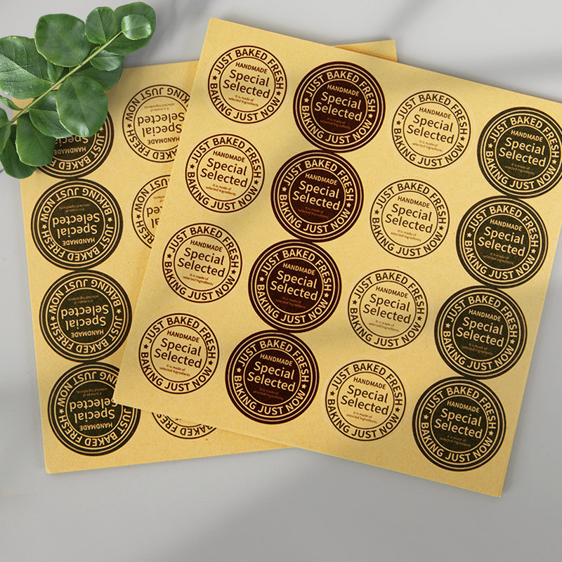 牛皮纸高颜值复古圆形封口贴信封不干胶贴纸标签外卖打包装盒袋子ins风自粘贴咖啡奶茶杯英文帖子装饰小图案