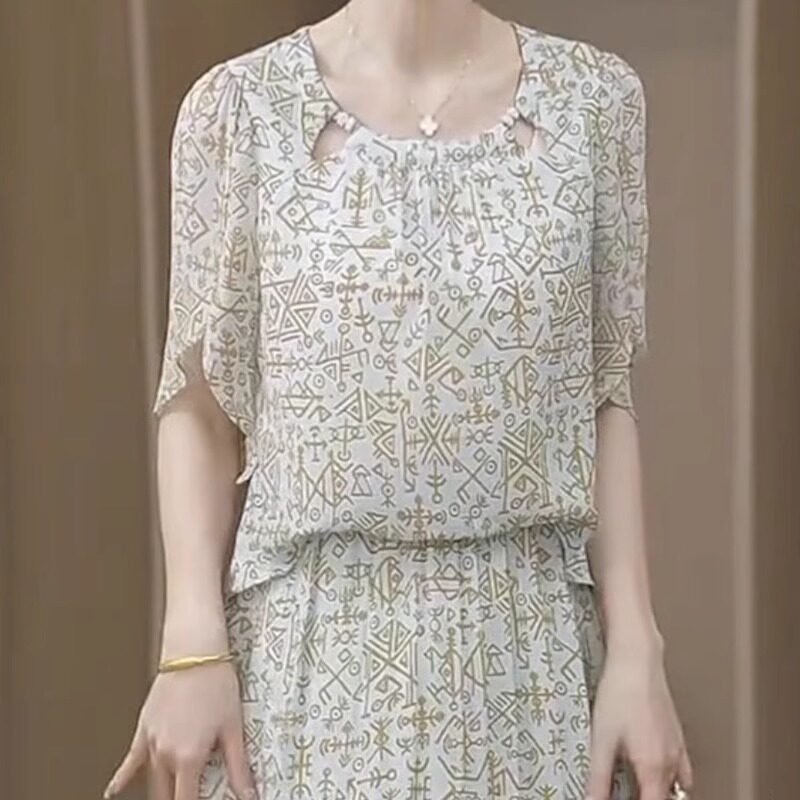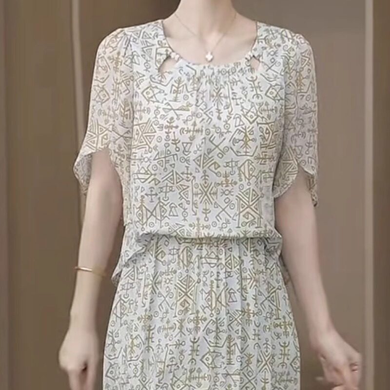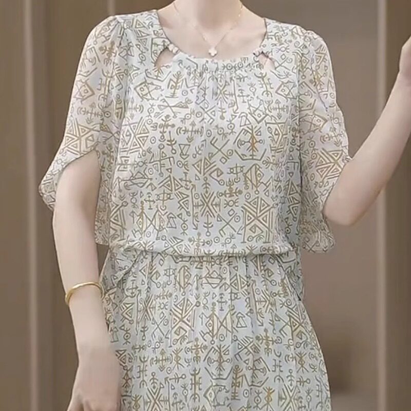 今年流行爆款圆领短袖连衣裙女2026年夏季新款妈妈假两件碎花裙子