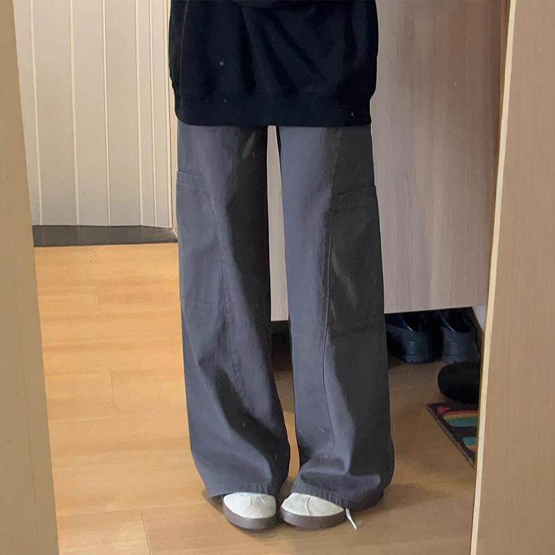 青少年工装裤女款2026新款学生秋季阔腿牛仔裤子春秋款高端酷飒风