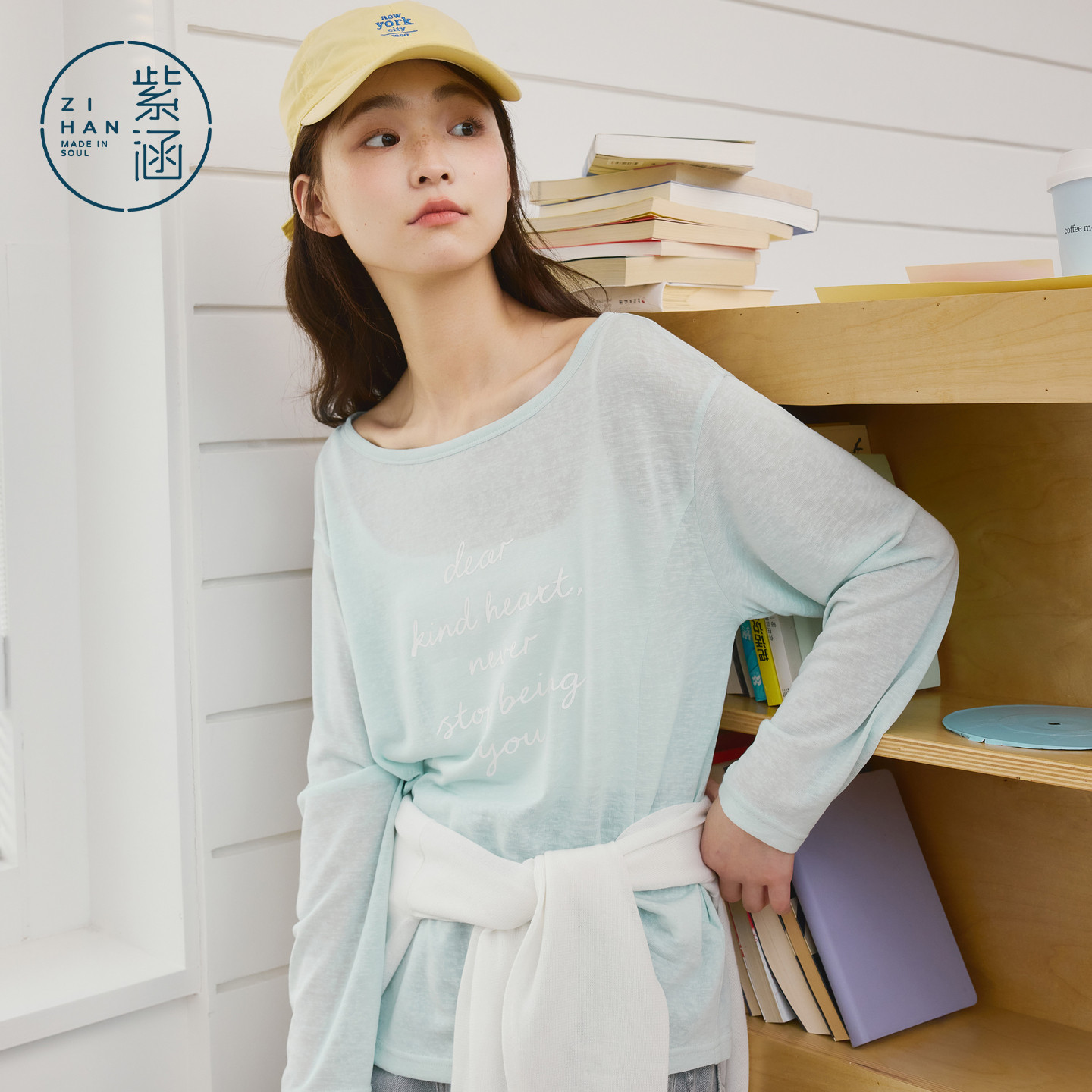 紫涵莱赛尔长袖罩衫女2026年春夏季新款轻薄透气遮阳外穿T恤上衣