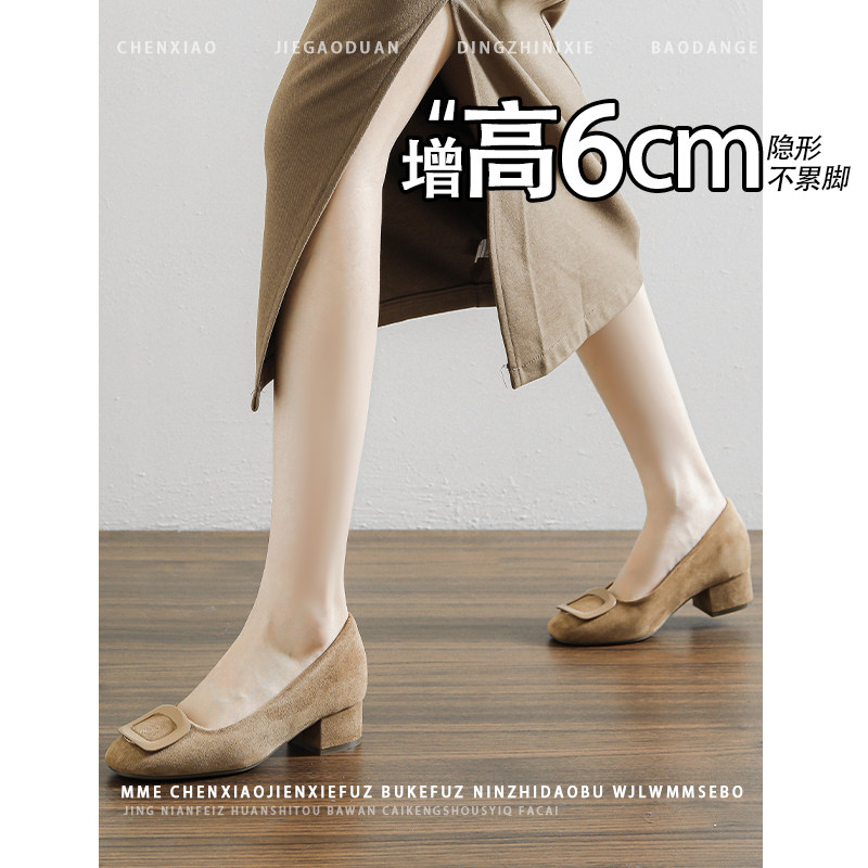 内增高6CM!不累脚绒面棕色玛丽珍鞋2026秋冬新款一脚蹬单鞋女